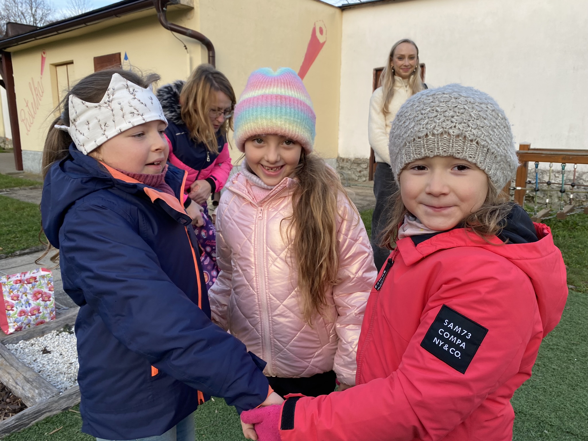 Na závěr slavnosti jsme se všichni vrátili ke školce, kde na děti čekala malá odměna ve formě zlatých rolniček.