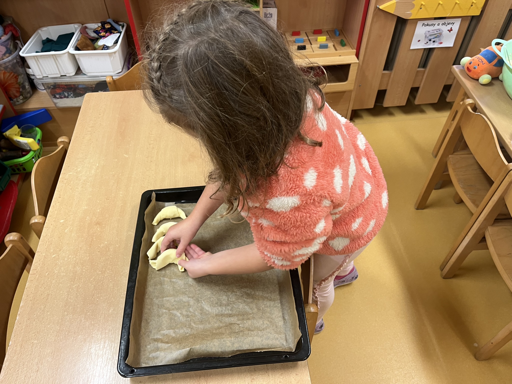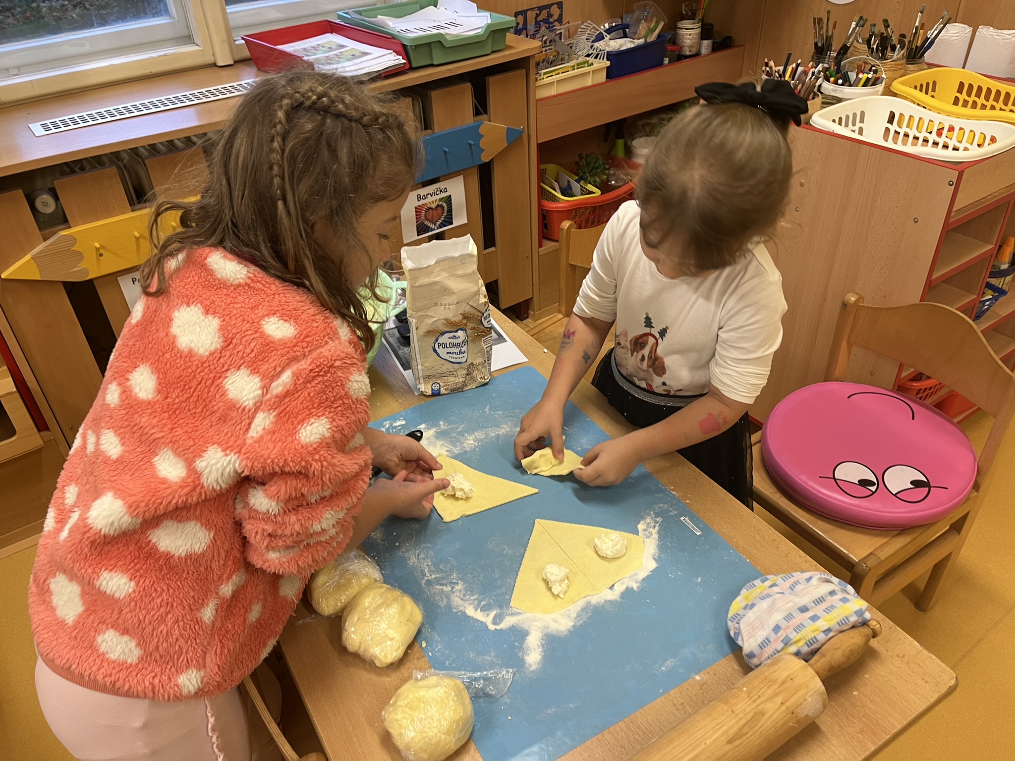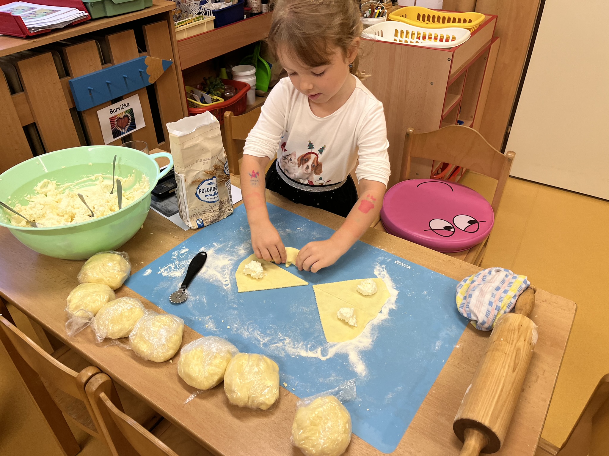 Tradicí v Pastelce je také pečení martinských rohlíčků. Děti z MOTÝLKŮ s radostí pomáhaly při přípravě těsta a při formování rohlíčků.