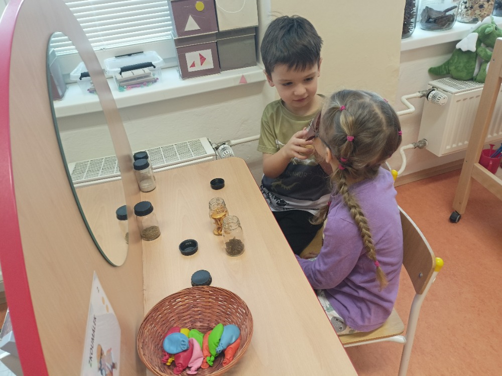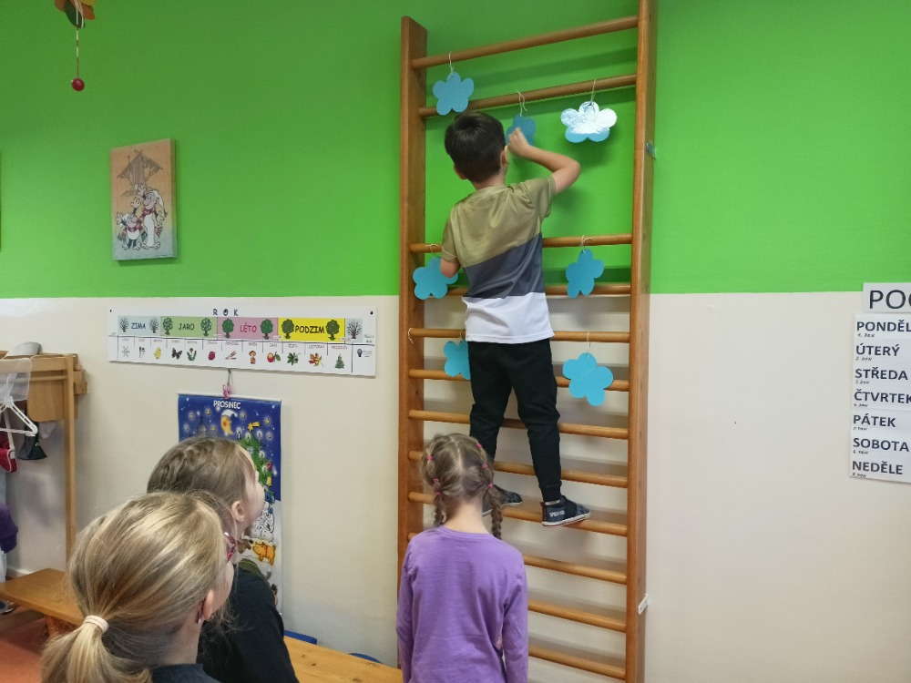 V centrech aktivit např. poznávaly vůně Vánoc, hledaly cesty ke stromečku, kreslily andílky, modelovaly cukroví. Cvičily vylézání na žebřiny (do nebe k mráčkům) a v andělském tunelu získávaly pocit bezpečí a pohody.