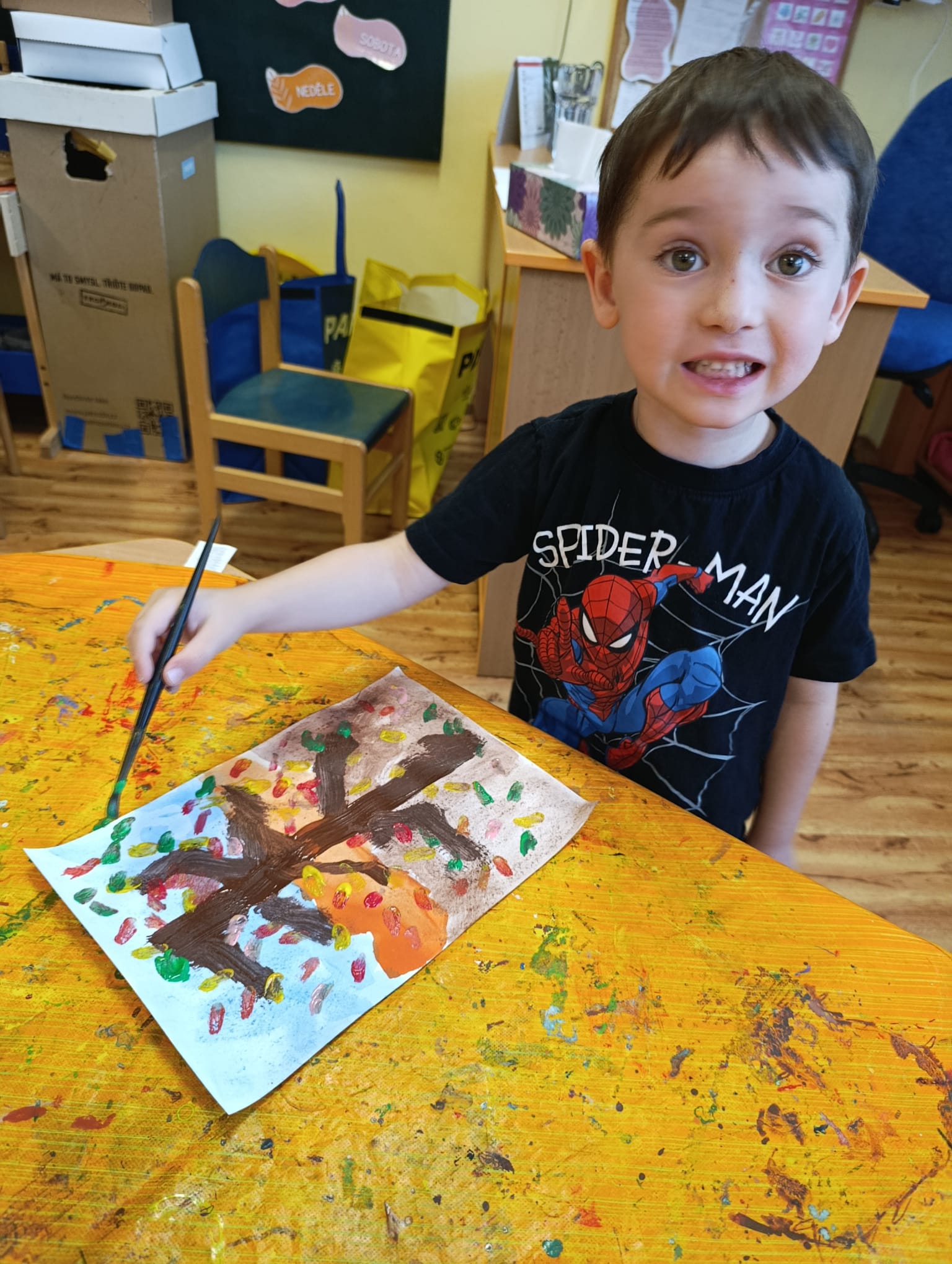 V rámci soutěže děti malovaly, jak vypadají stromy na podzim.