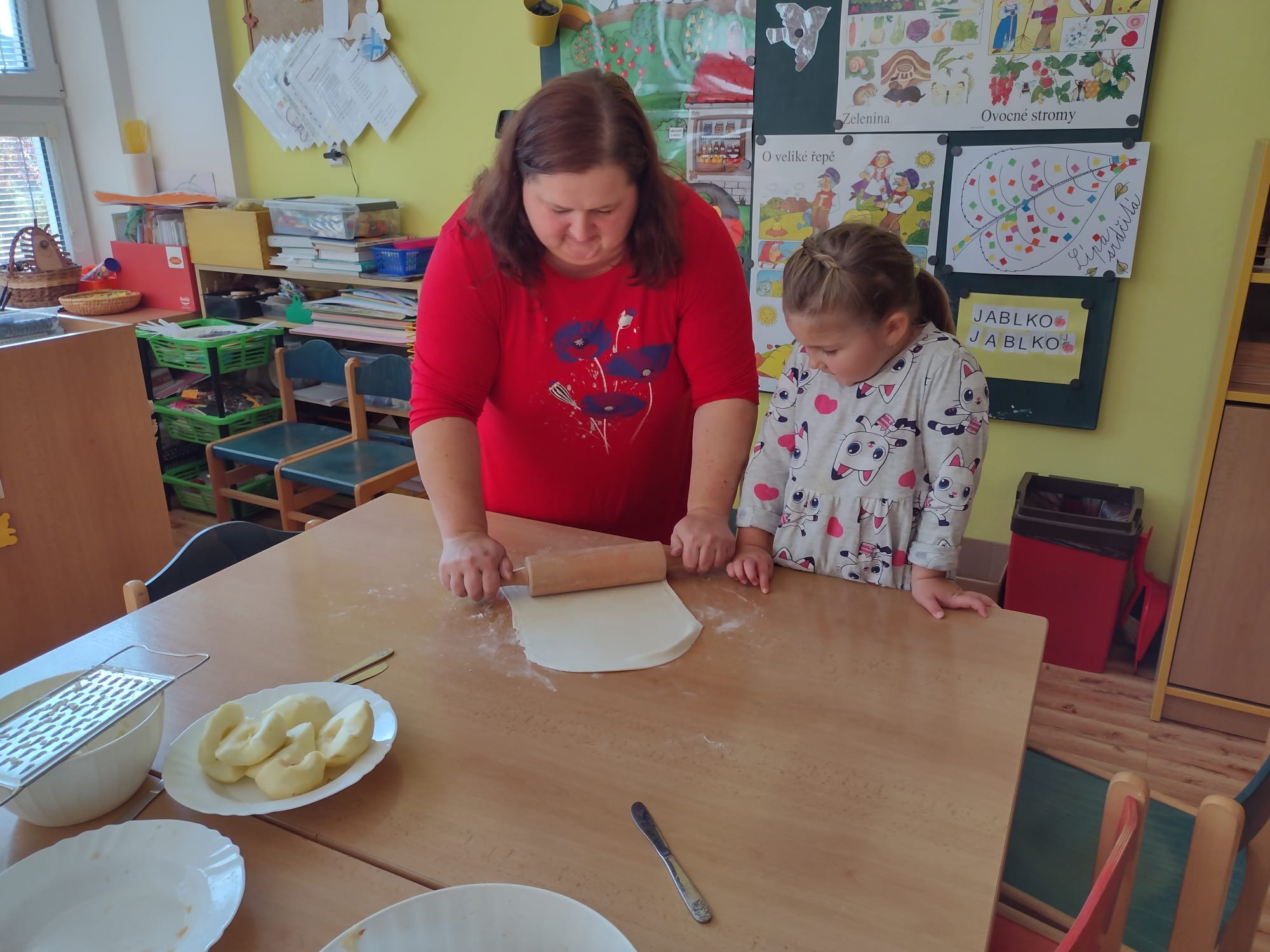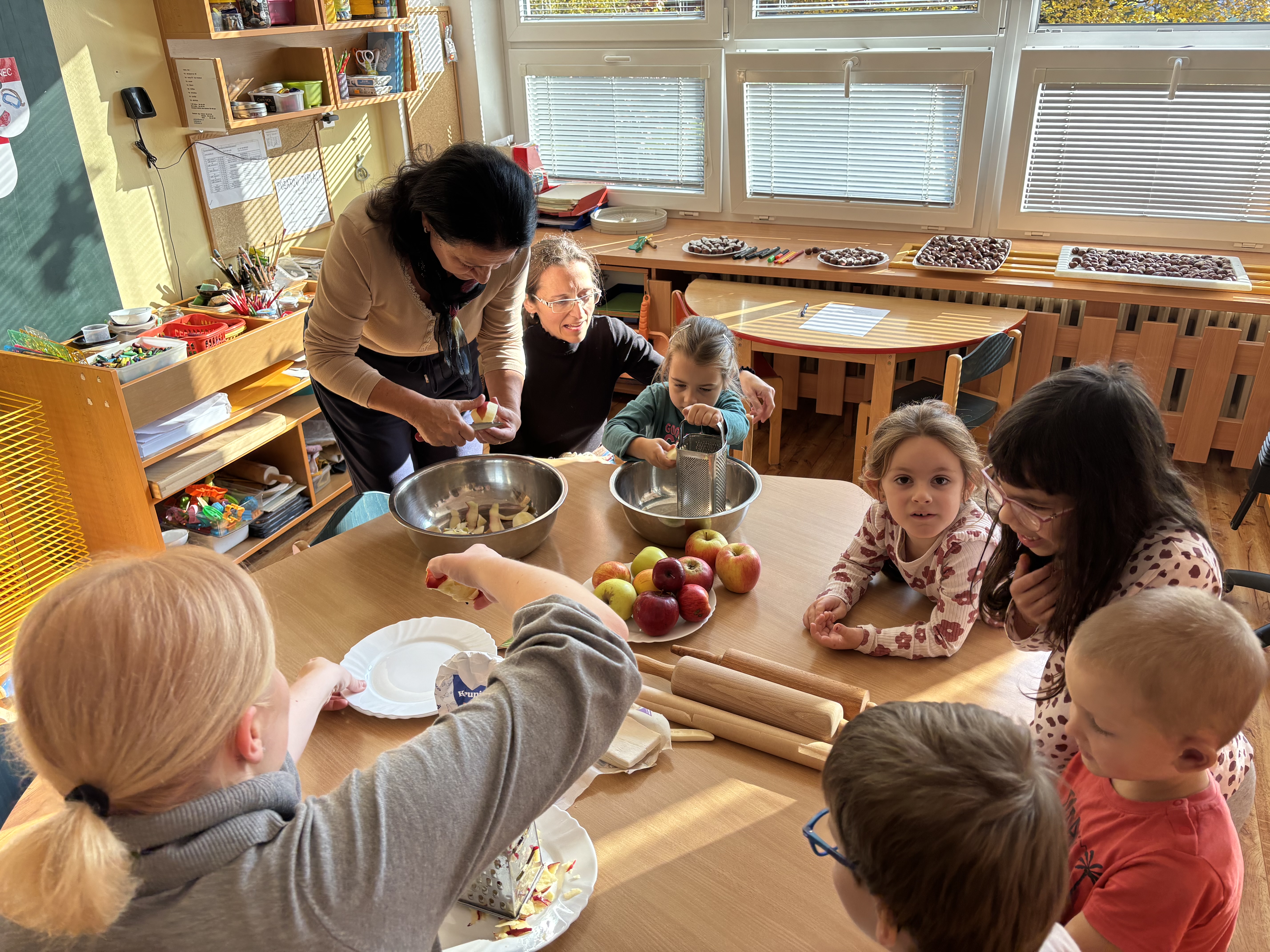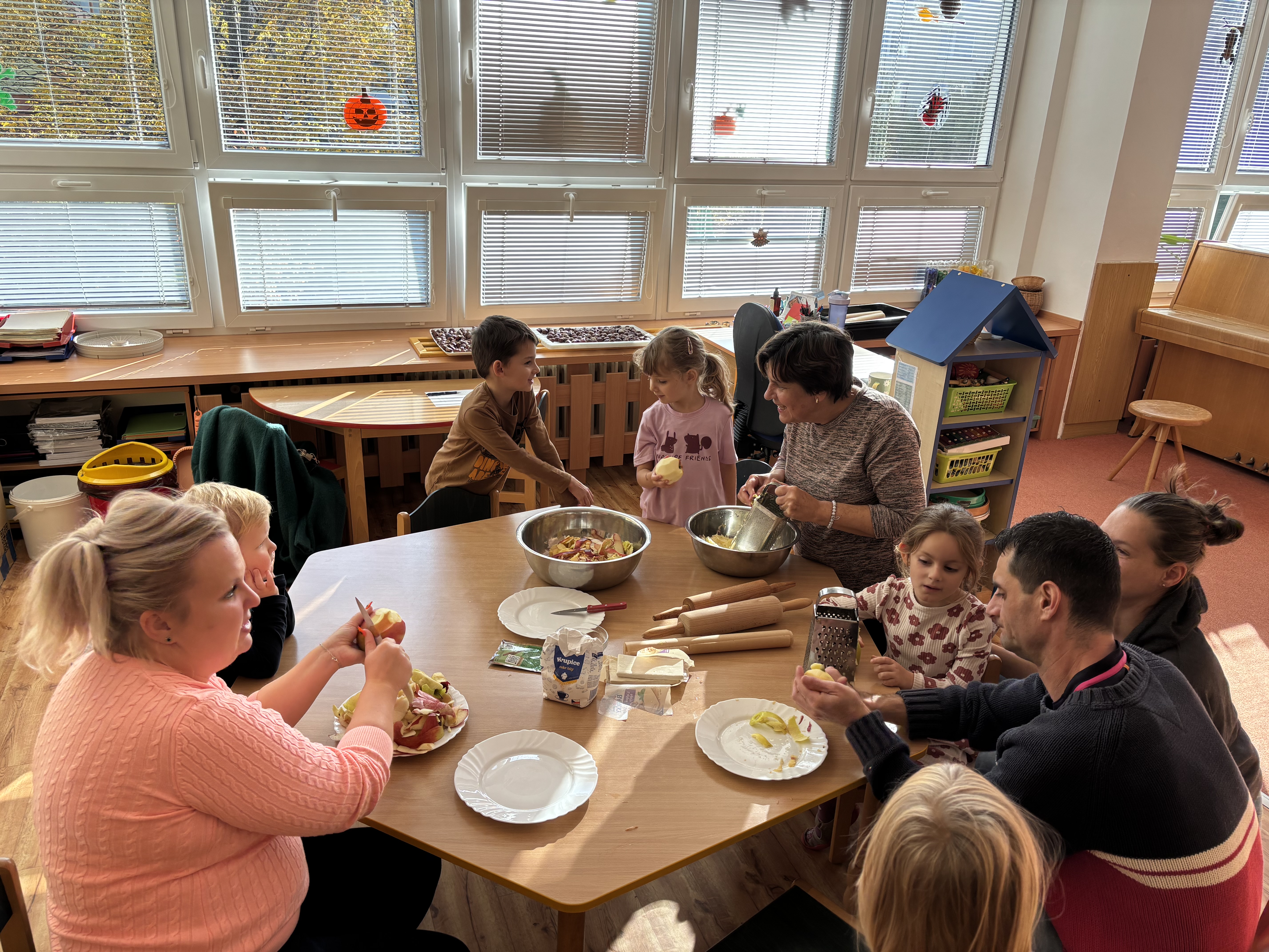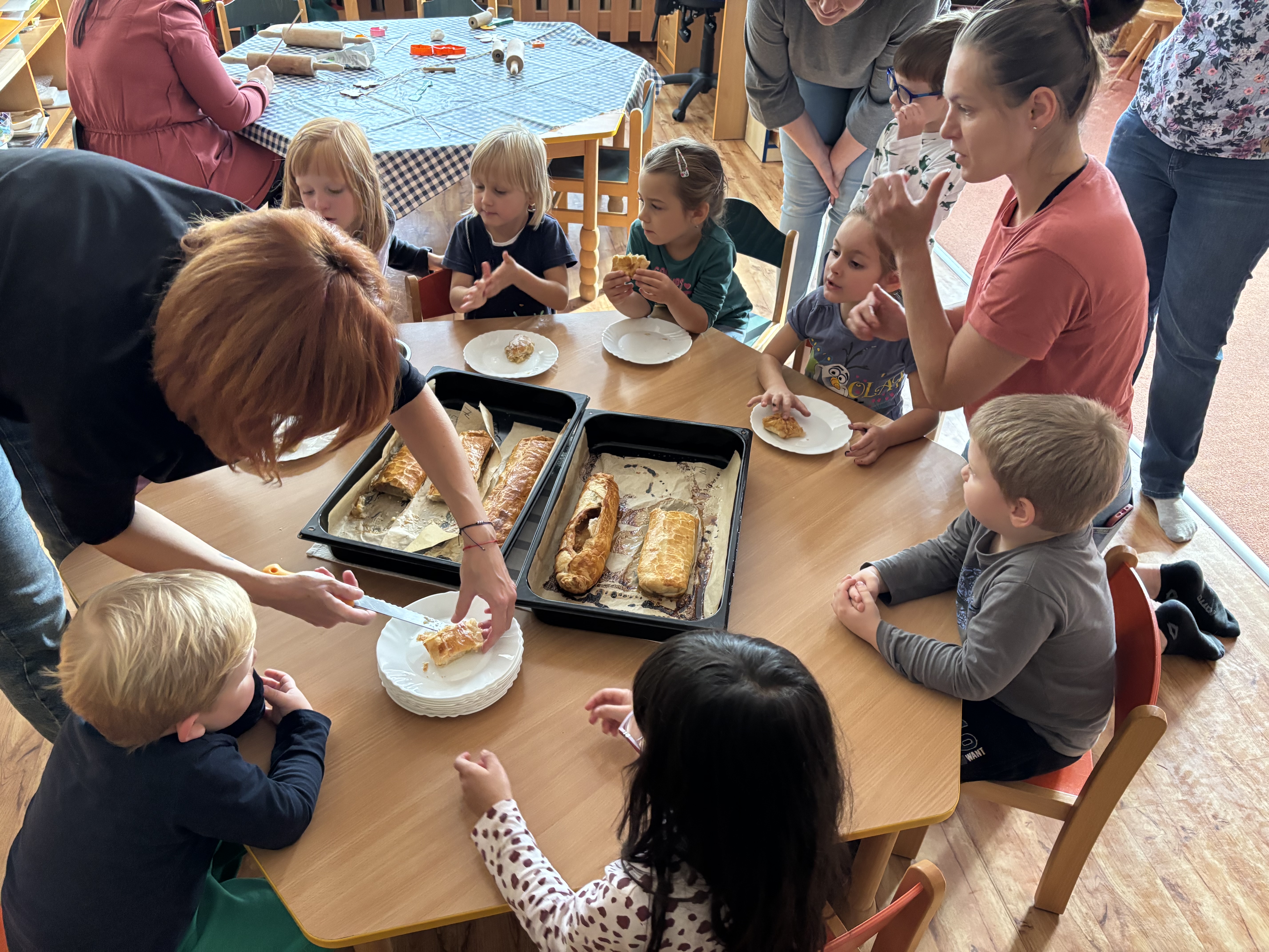 Ve čtvrtek 24. 10. 2024 se uskutečnilo štrůdlování. Program probíhal v jednotlivých třídách a děti si společně s rodiči nastrouhali jablka, uváleli těsto, zabalili štrůdl a po upečení se do něj s chutí pustili. Byly připravené i další aktivity, které mohli společně dělat: hry, tvoření,.. Rodičům jsme s dětmi poté zazpívali písně, které jsme se naučili.