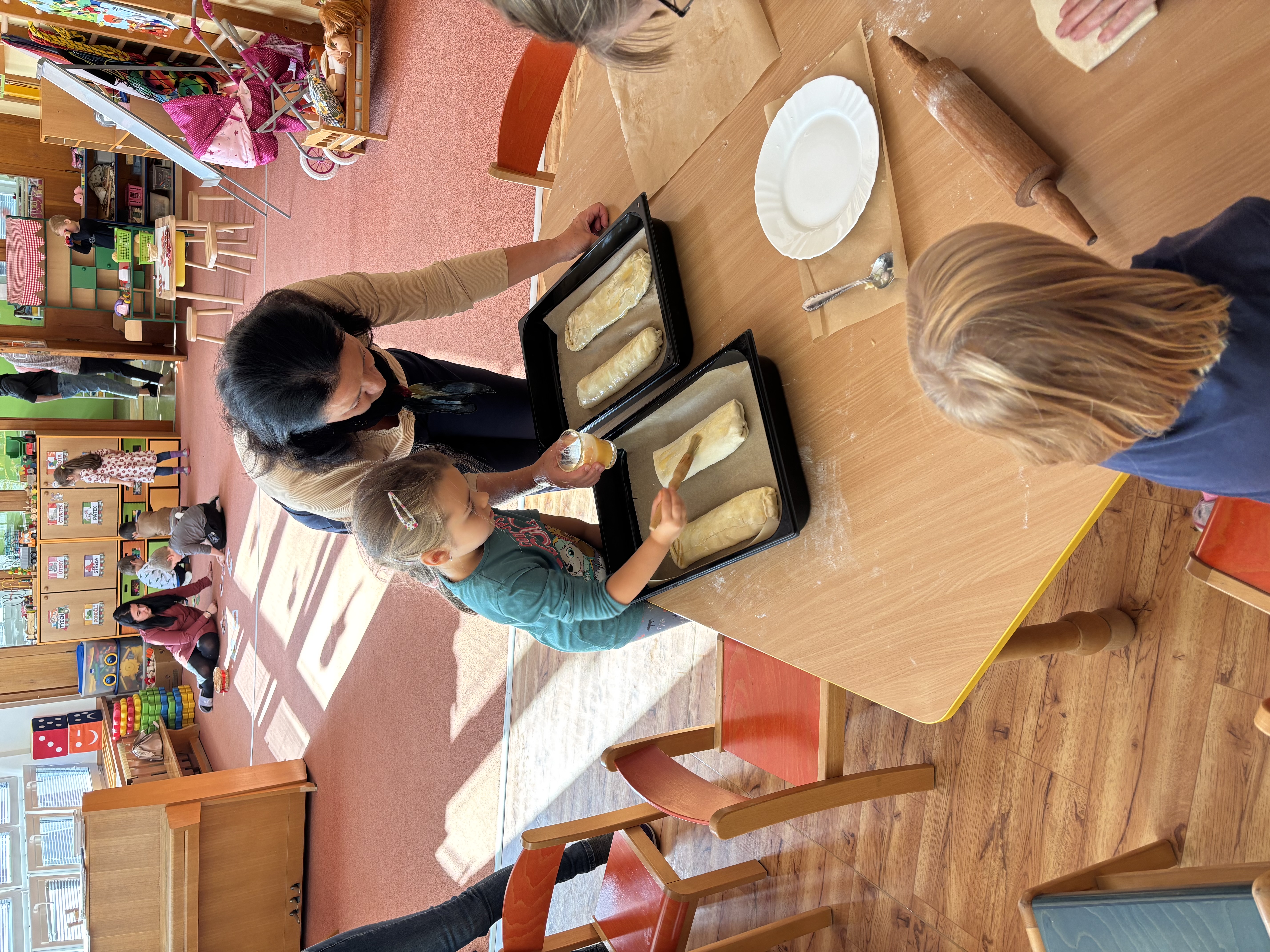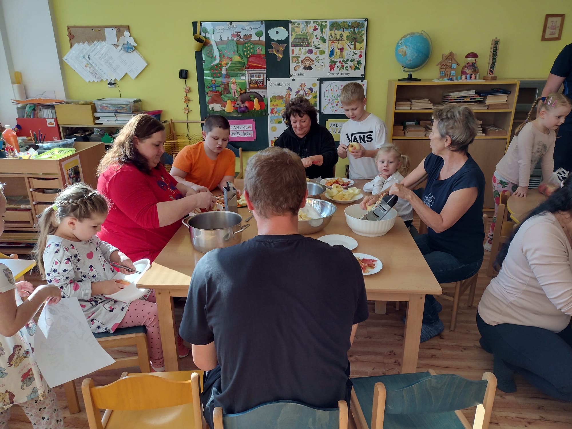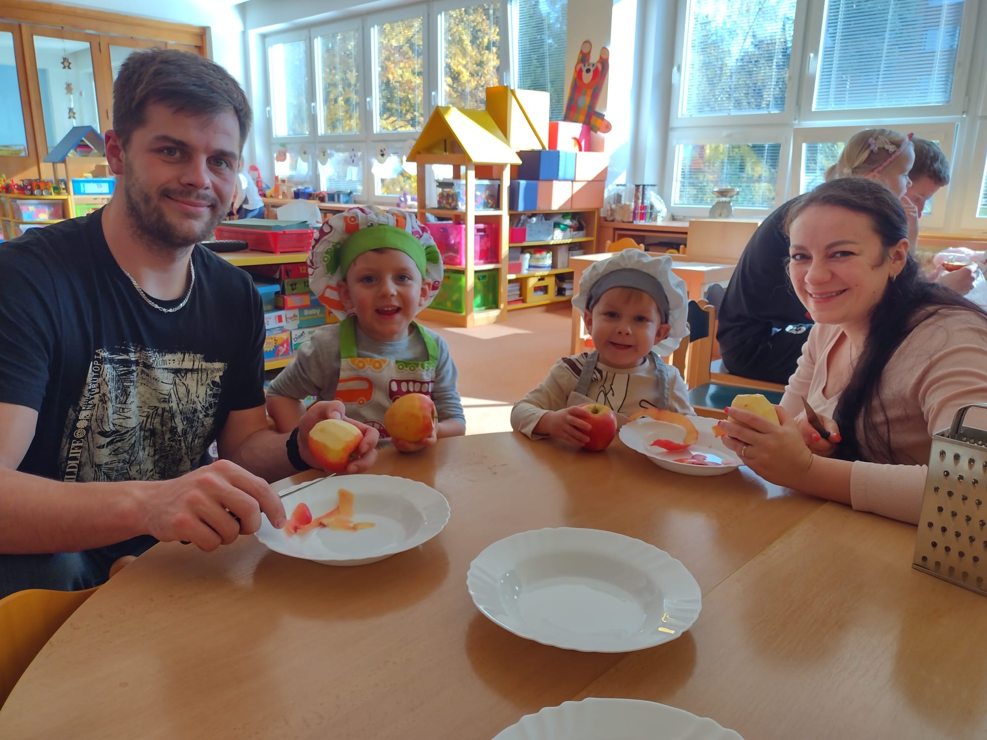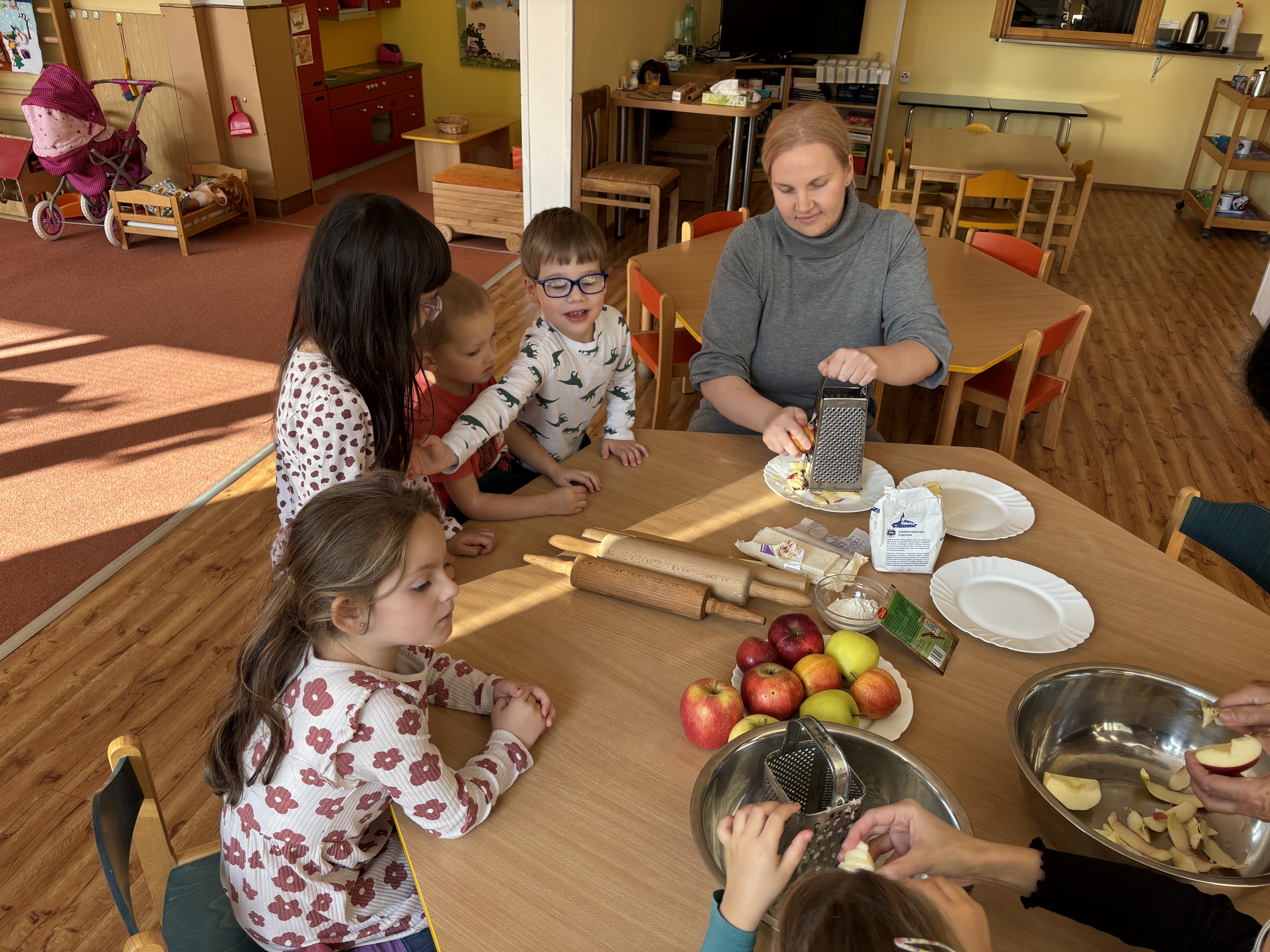 Ve čtvrtek 24. 10. 2024 se uskutečnilo štrůdlování. Program probíhal v jednotlivých třídách a děti si společně s rodiči nastrouhali jablka, uváleli těsto, zabalili štrůdl a po upečení se do něj s chutí pustili. Byly připravené i další aktivity, které mohli společně dělat: hry, tvoření,.. Rodičům jsme s dětmi poté zazpívali písně, které jsme se naučili.