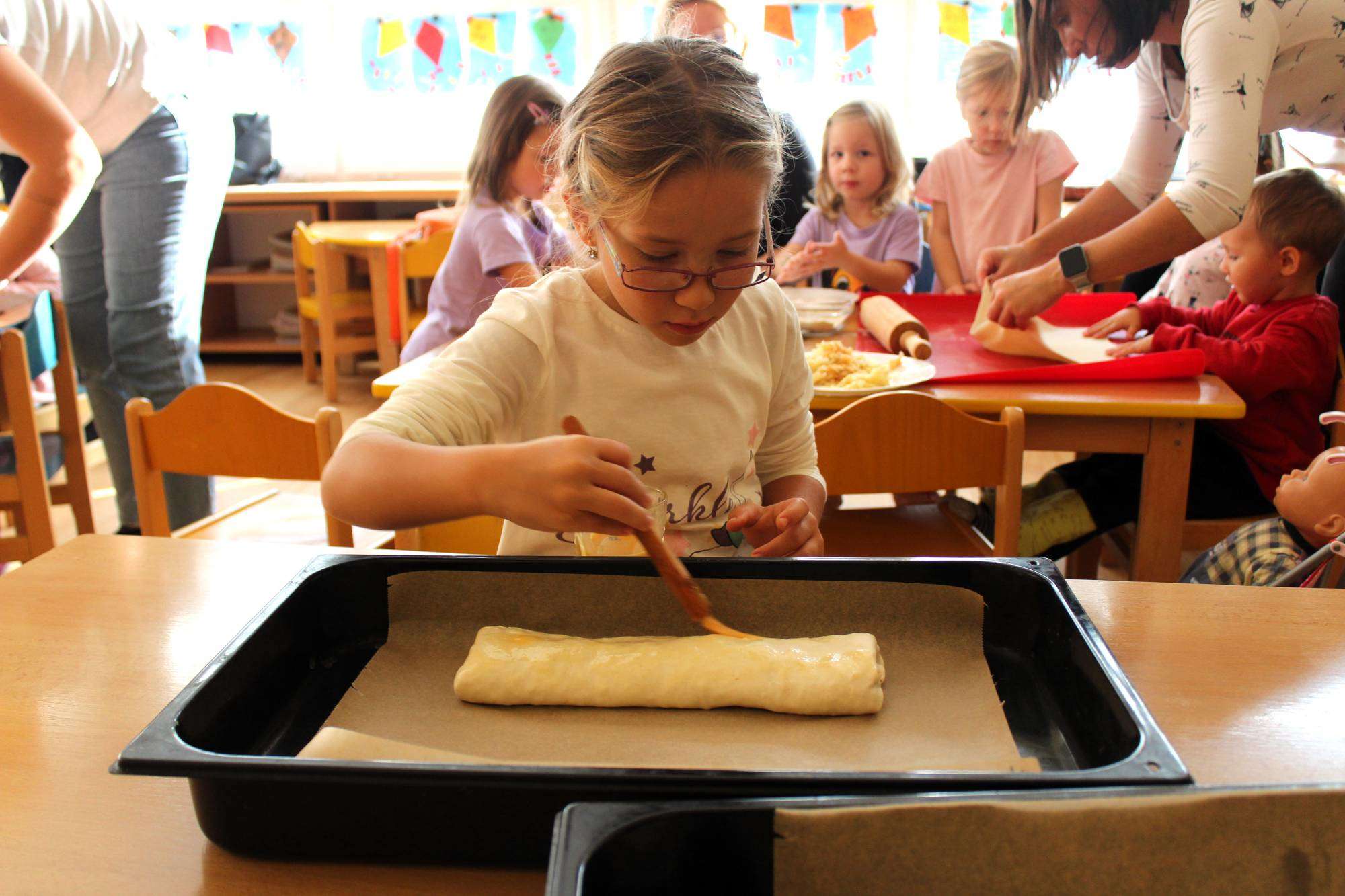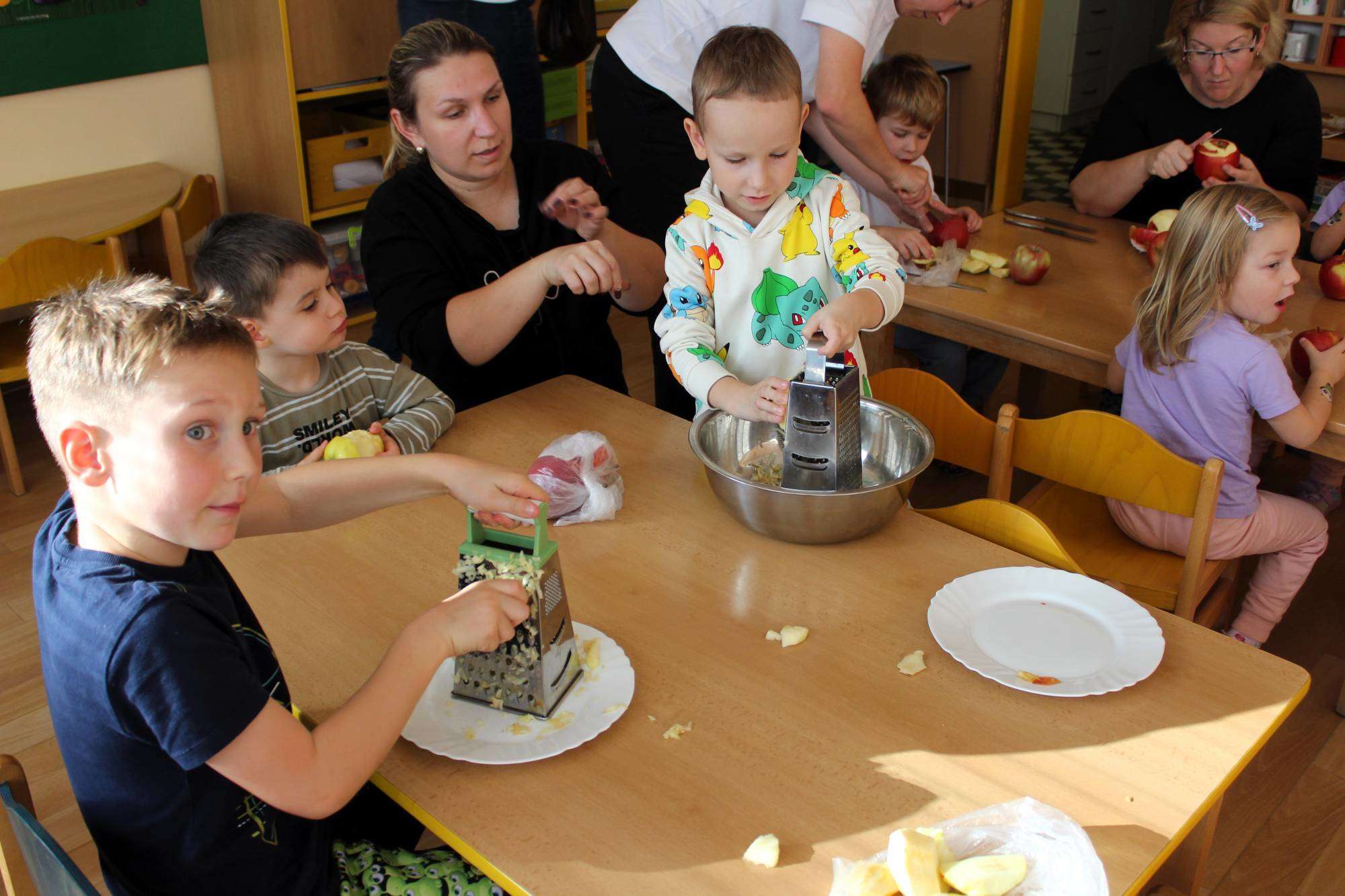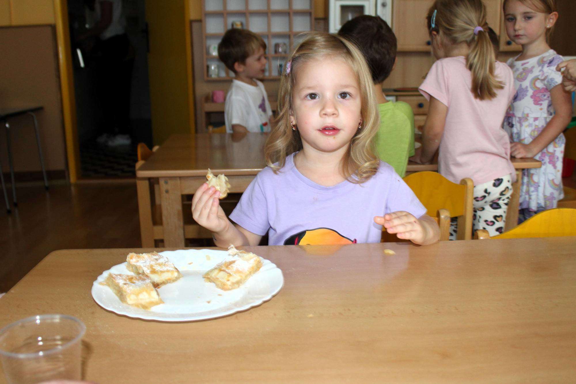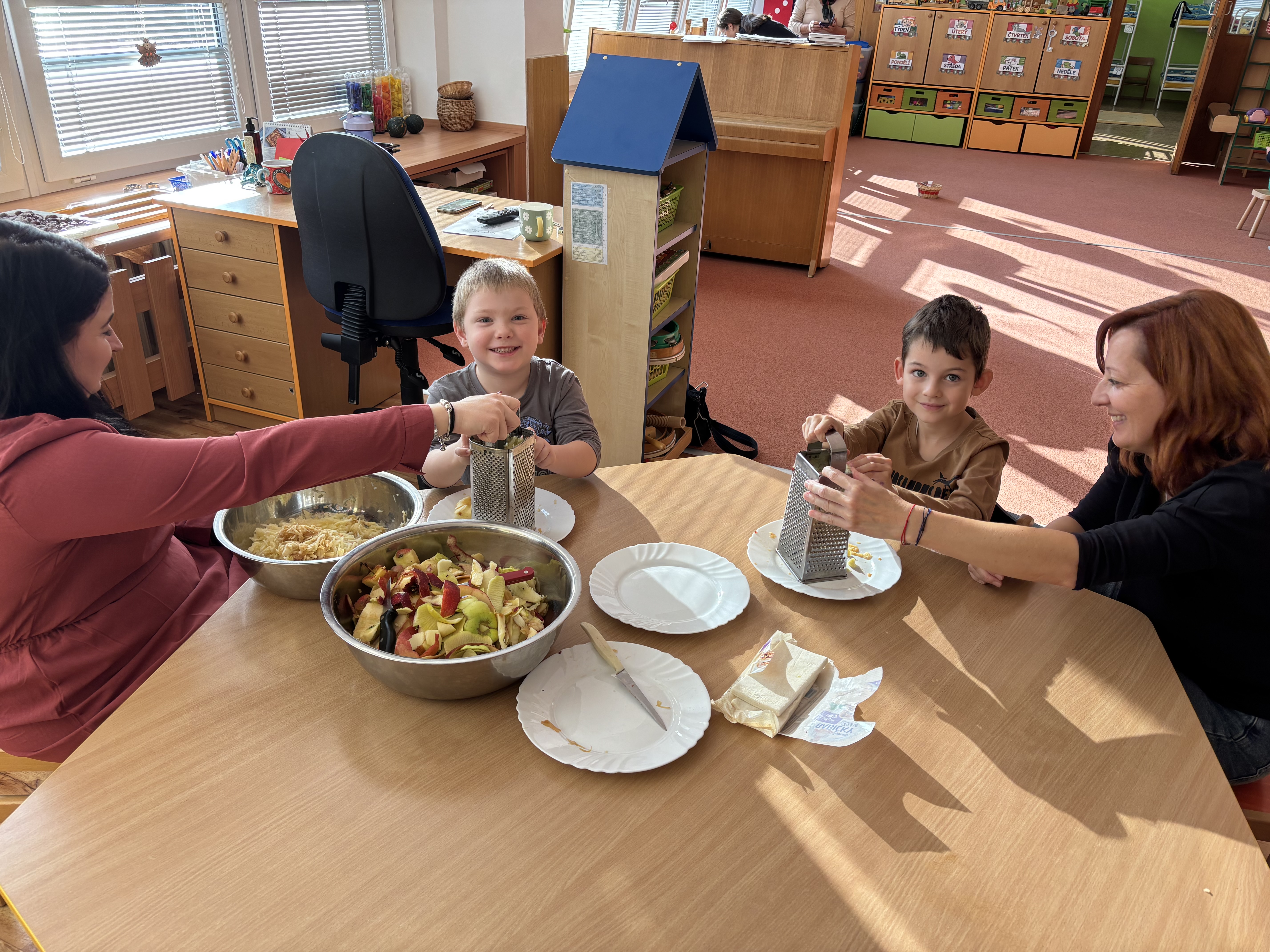 Ve čtvrtek 24. 10. 2024 se uskutečnilo štrůdlování. Program probíhal v jednotlivých třídách a děti si společně s rodiči nastrouhali jablka, uváleli těsto, zabalili štrůdl a po upečení se do něj s chutí pustili. Byly připravené i další aktivity, které mohli společně dělat: hry, tvoření,.. Rodičům jsme s dětmi poté zazpívali písně, které jsme se naučili.