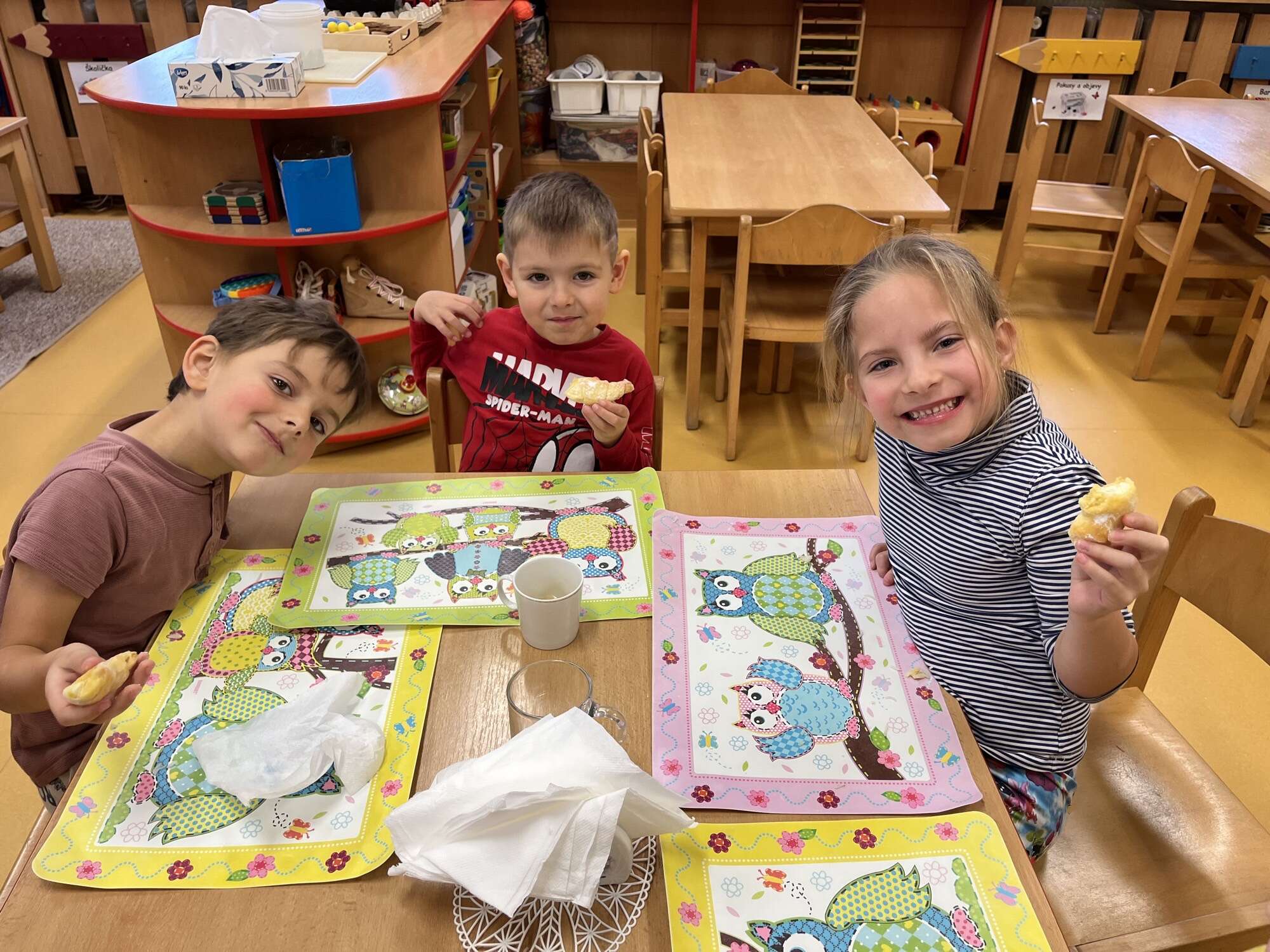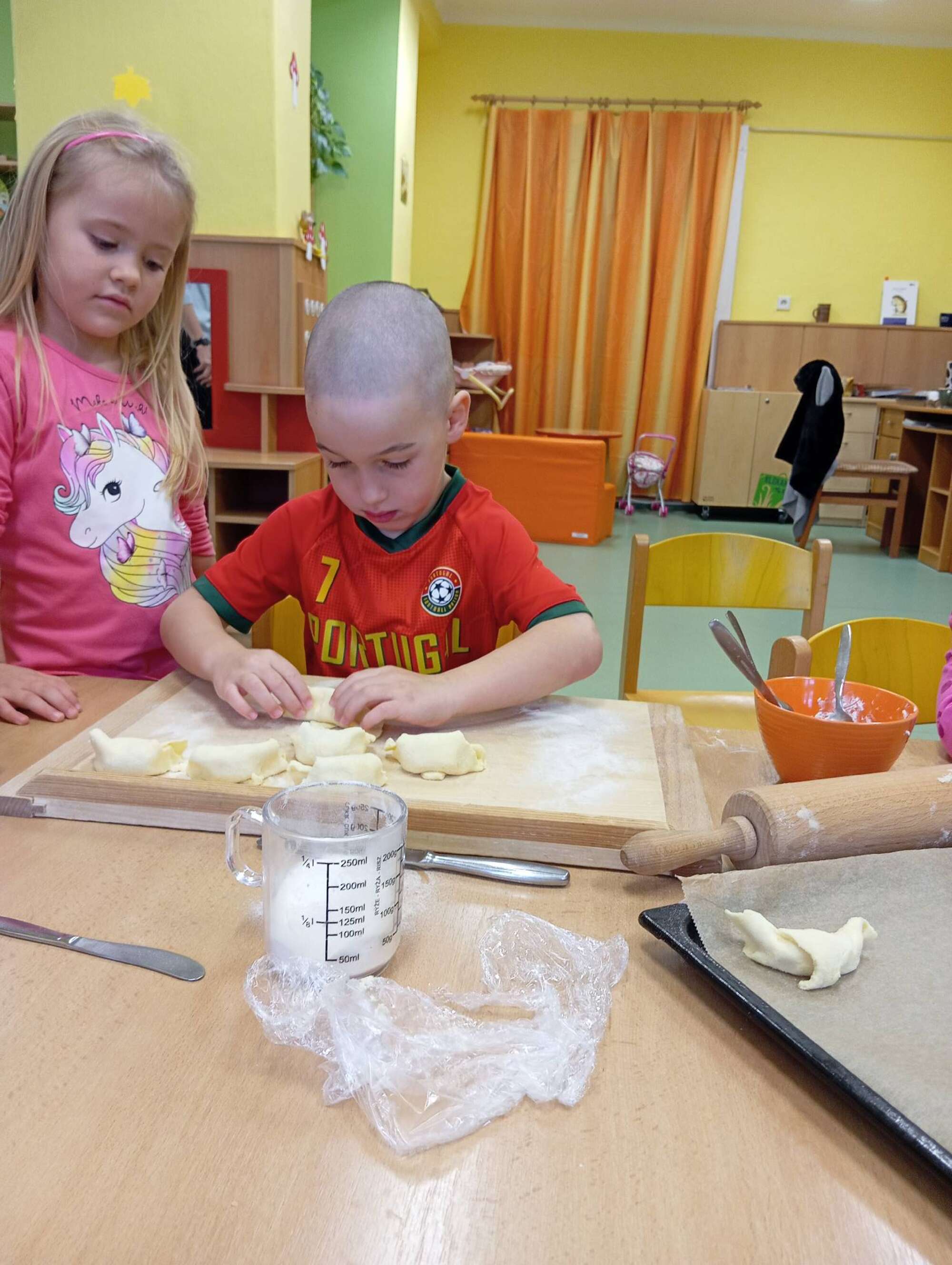 Celý svatomartinský týden jsme uzavřeli sladkou odměnou – pečením svatomartinských rohlíčků, které provoněly celou školku.