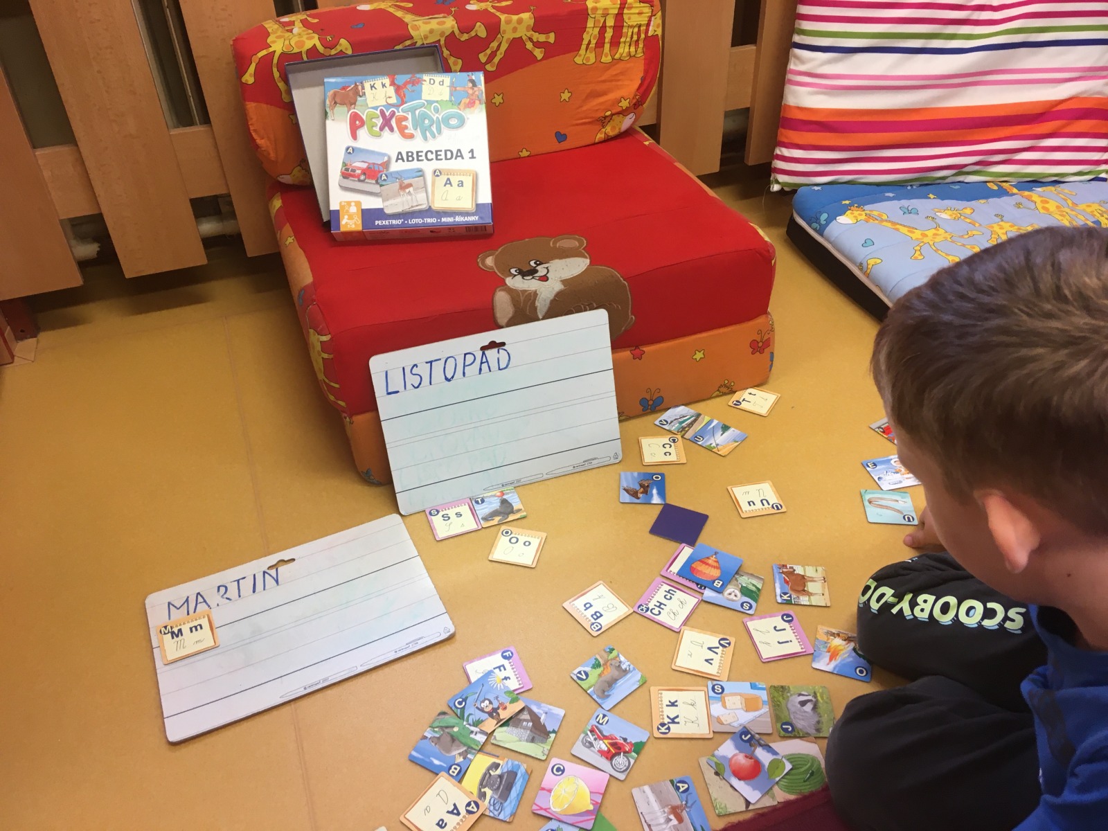 Ve ŠKOLIČCE si procvičily písmenka ve slovech MARTIN a LISTOPAD