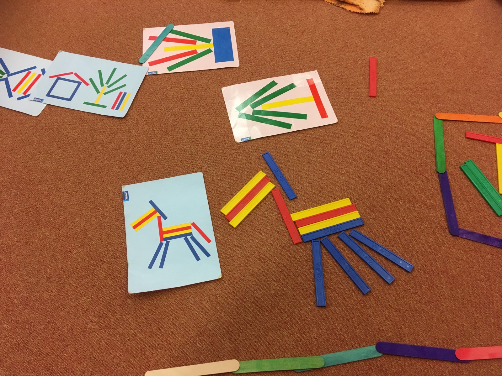 a také zkusily skládat pomocí dřívek koně nebo jiné obrázky podle předlohy.