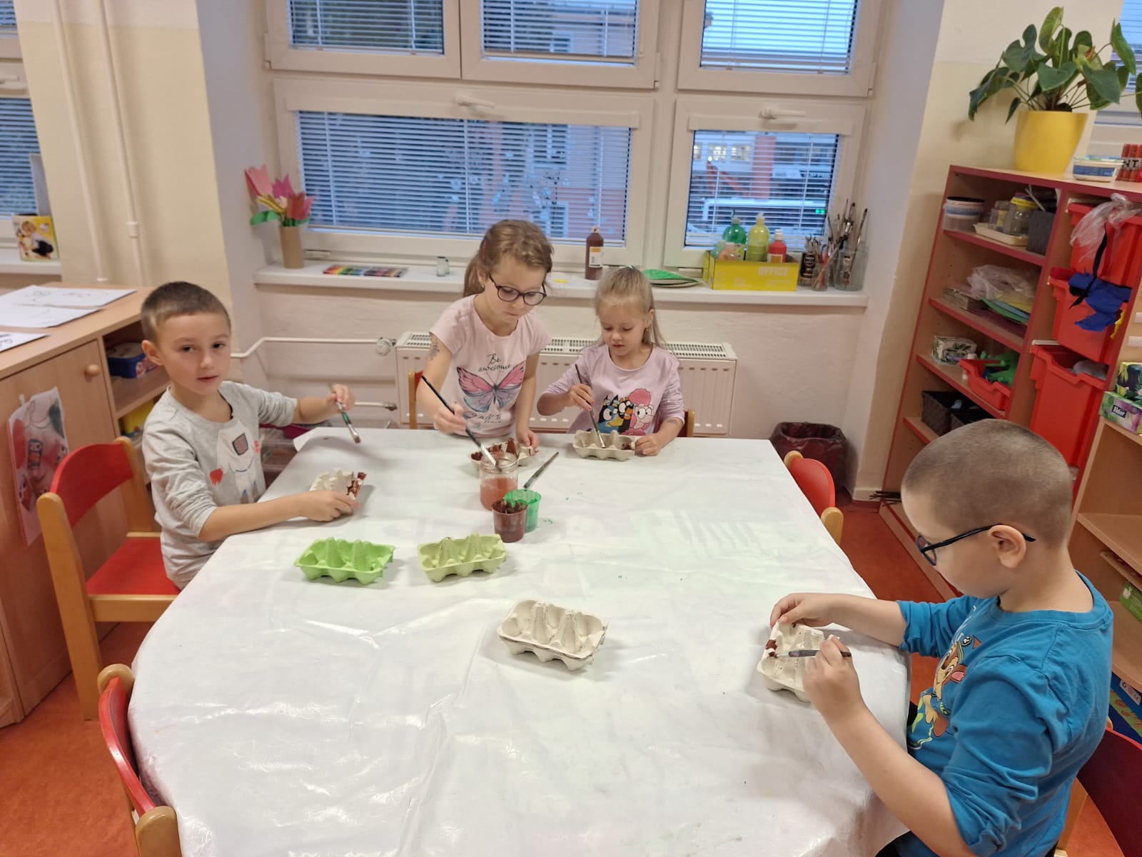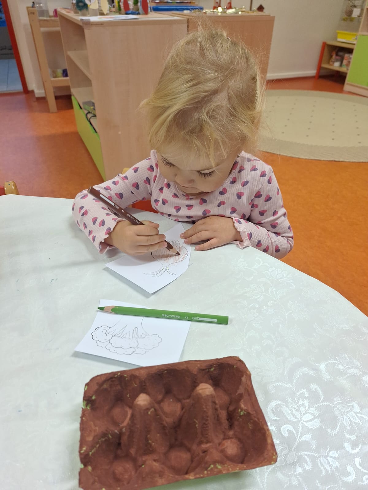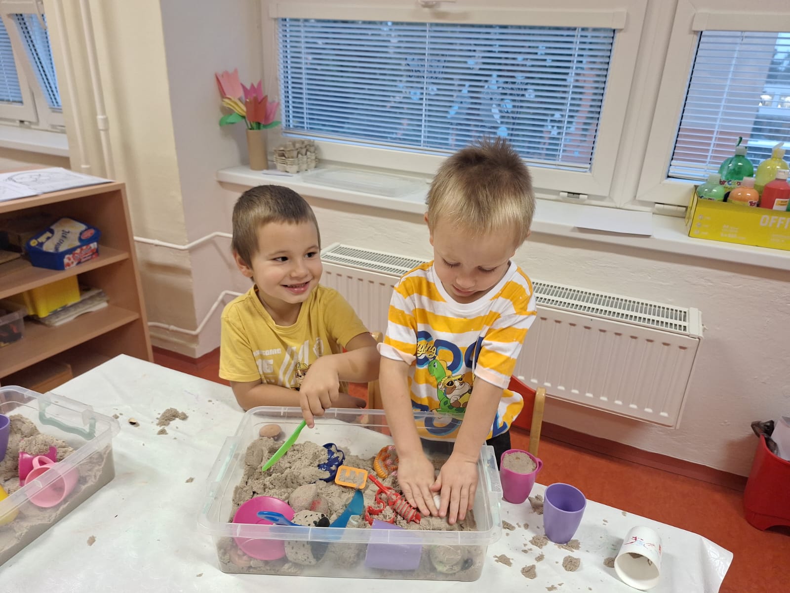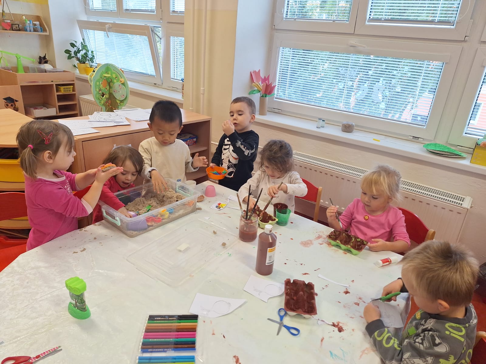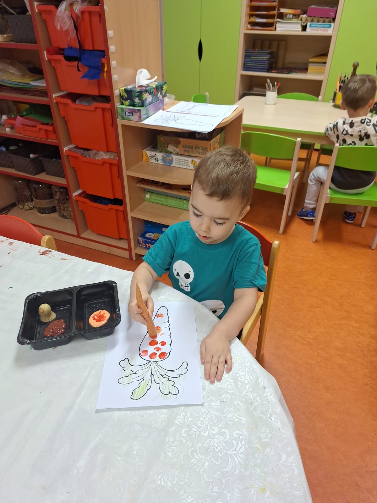 Aktivita připravená pro předškoláky přilákala i nejmladší děti. Podobně tak tiskání mrkve mrkví a "pytle brambor" bramborou přilákalo i nejstarší děti, ač byla aktivita připravená pro mrňousky.