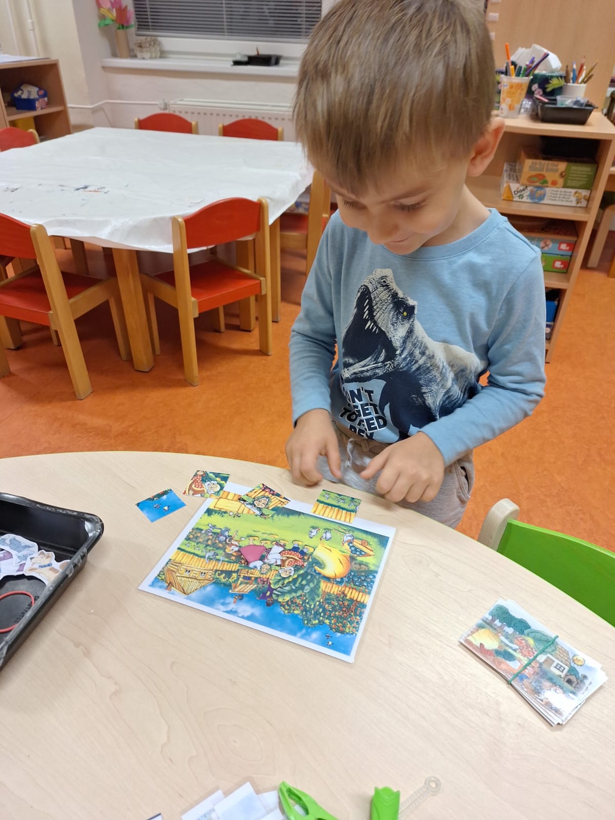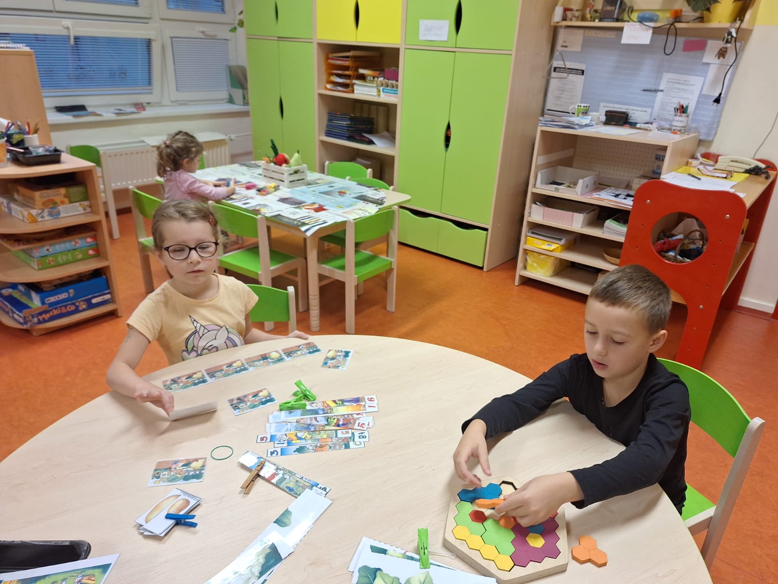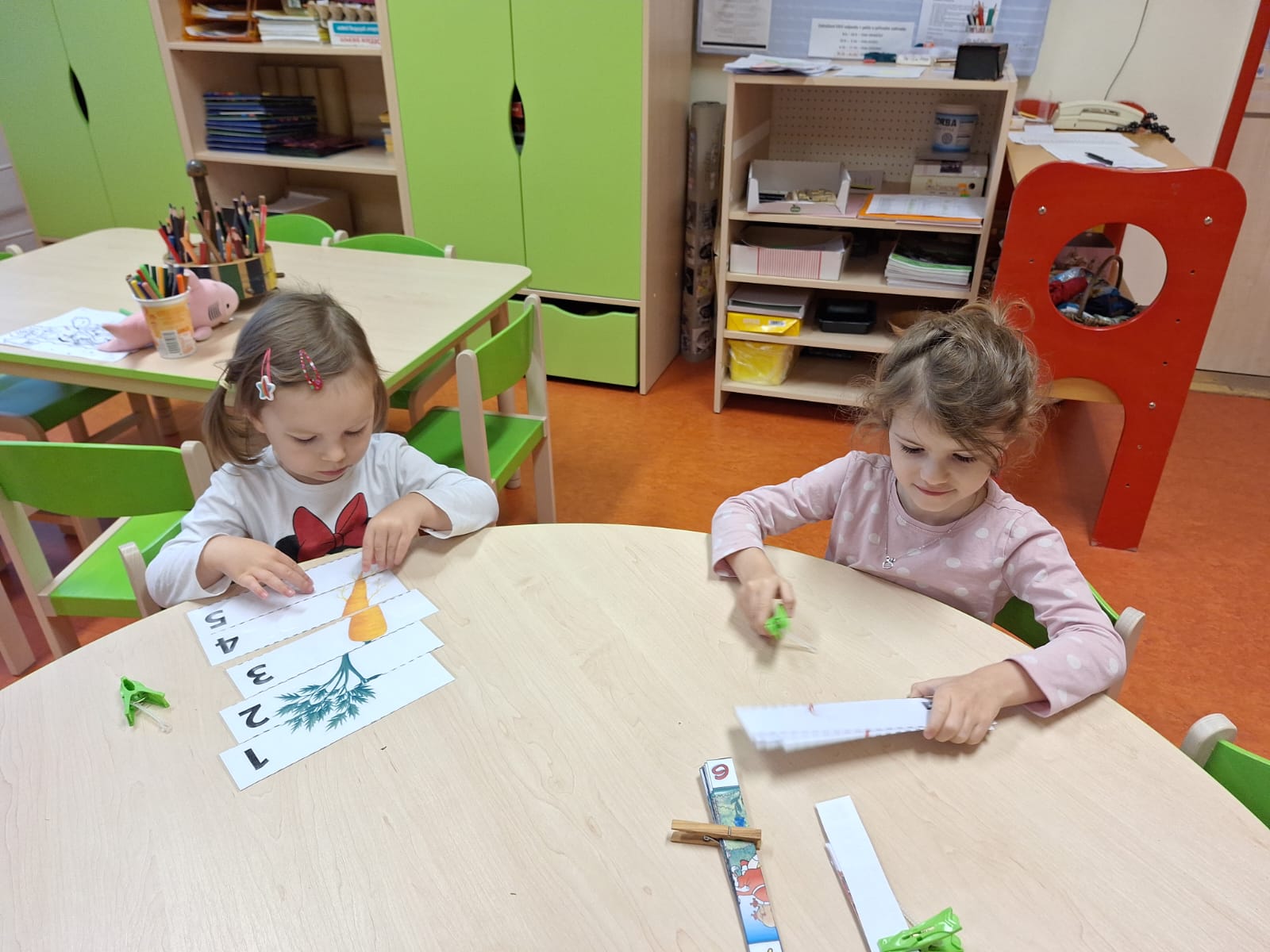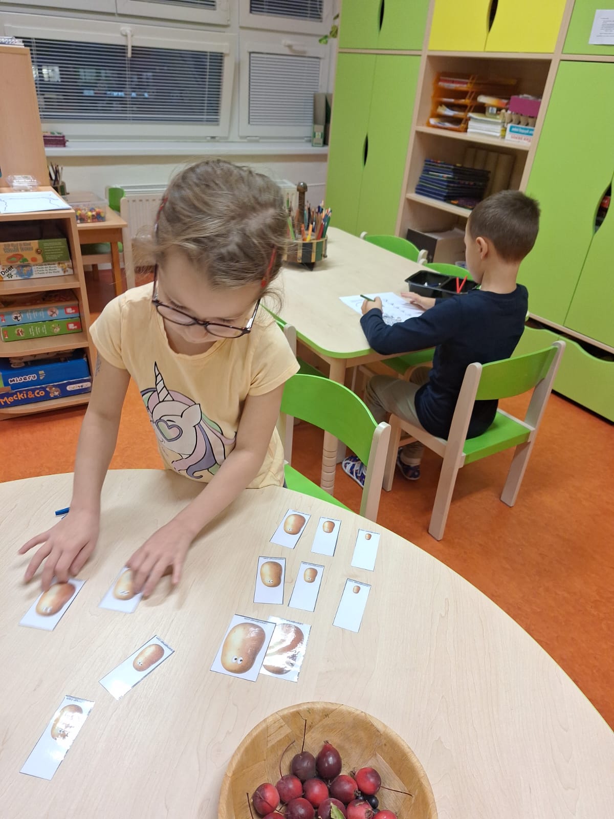 Děti skládaly rozstříhané obrázky zeleniny, někde jim pomáhaly číslice, někde písmenka. Řadily brambory podle velikosti.