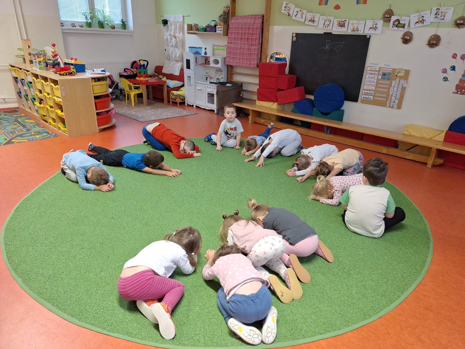Zahráli jsme si pohádku O řepě, naučili se o ní písničku a ještě jednu písničku Zelenou. Tančili jsme na písničku Dýně Olívie.