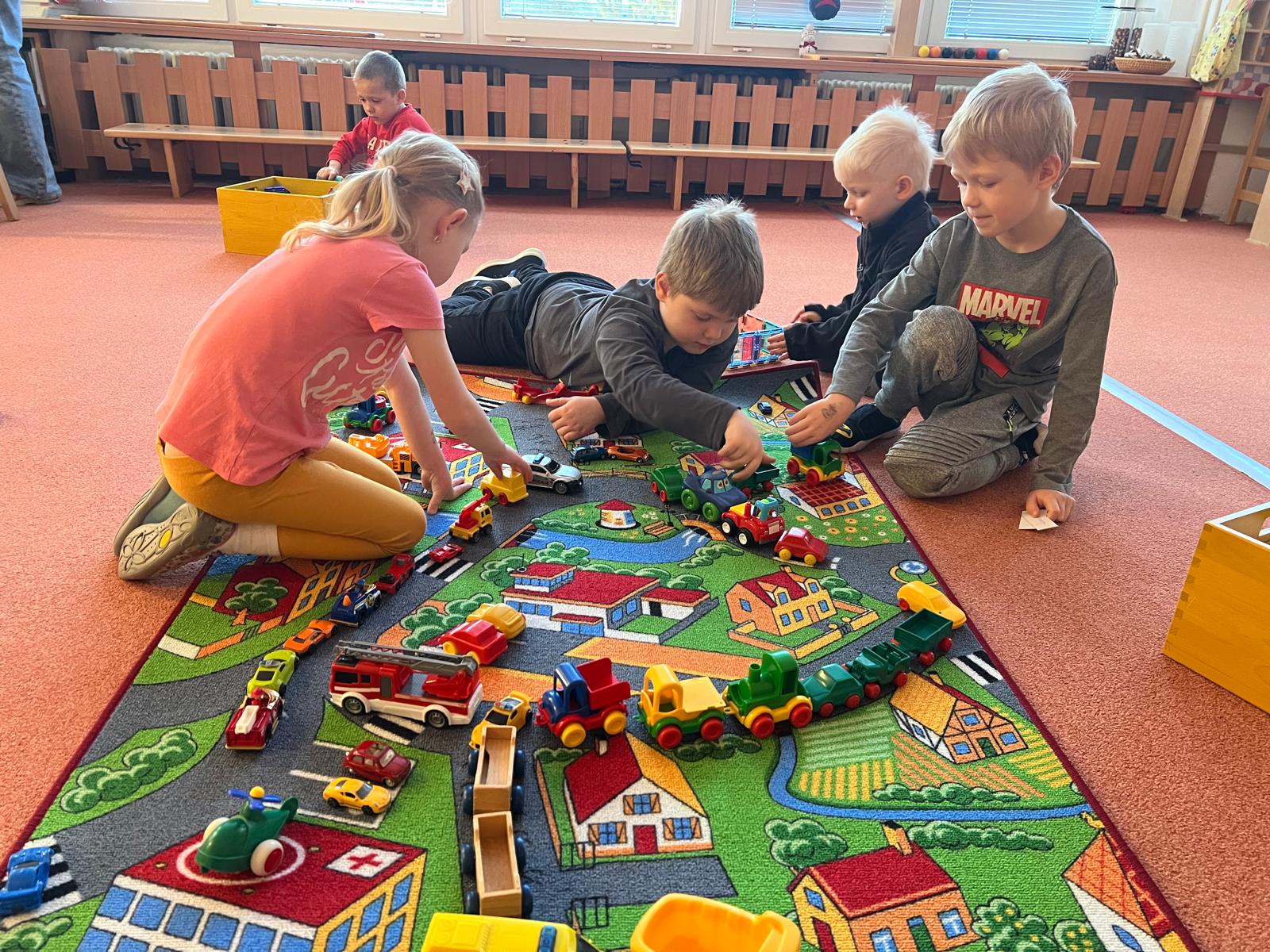 • kusový koberec se silničním potiskem, který obohatí naše hry a vzdělávací činnosti.