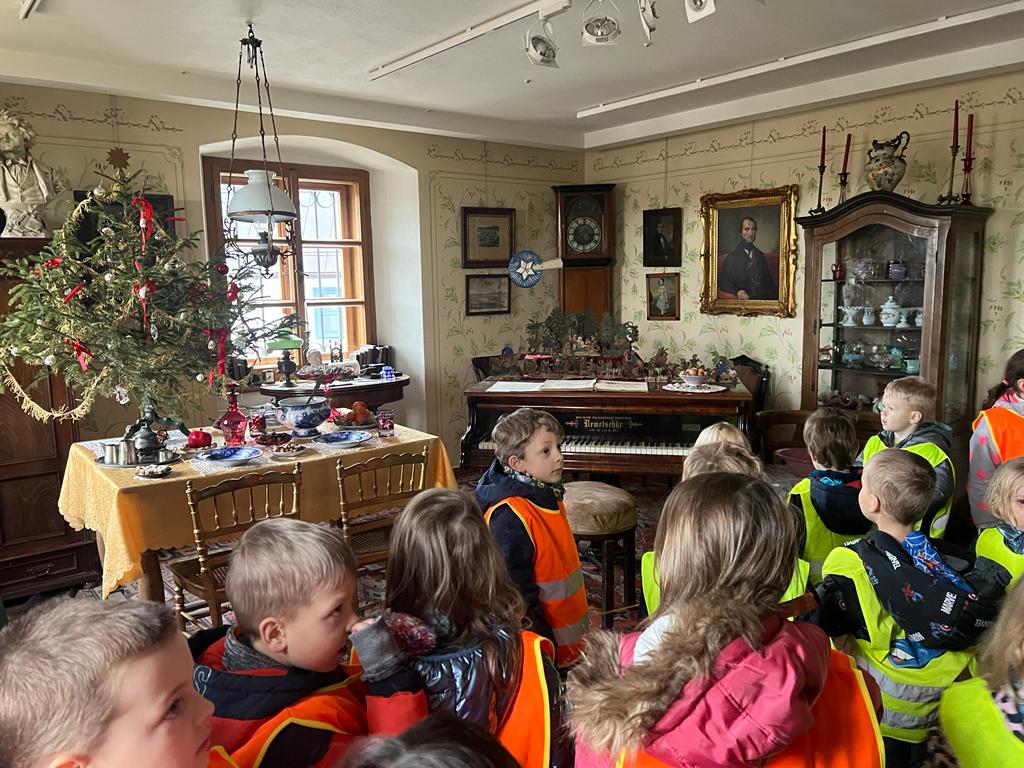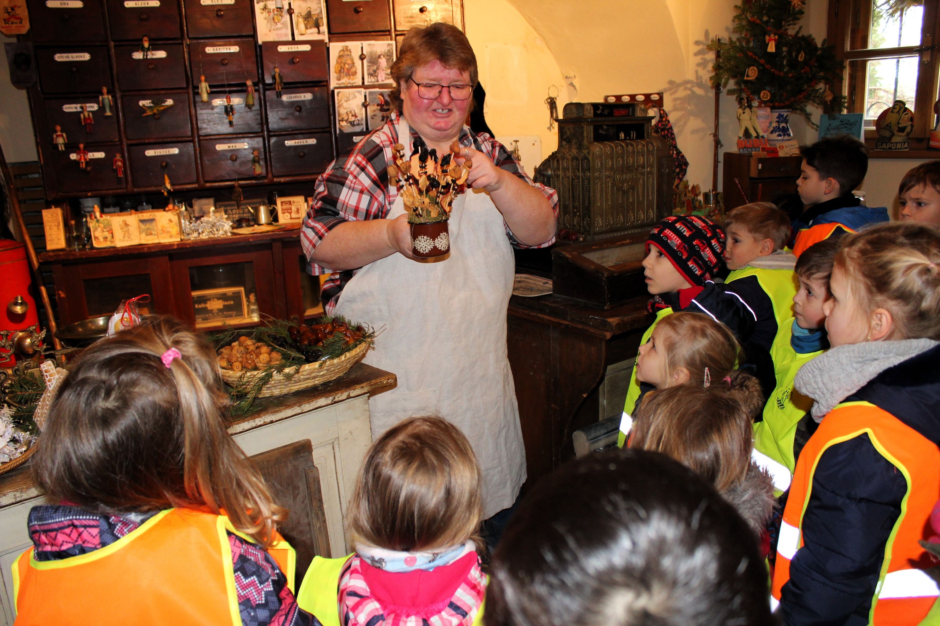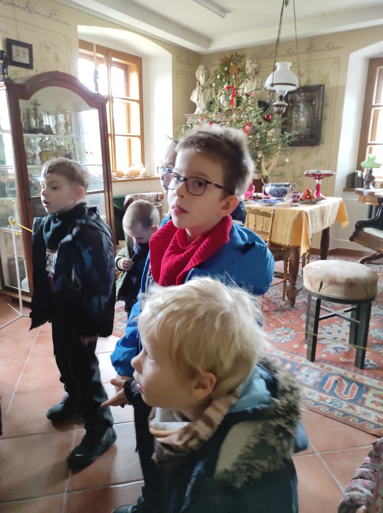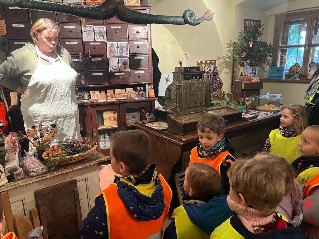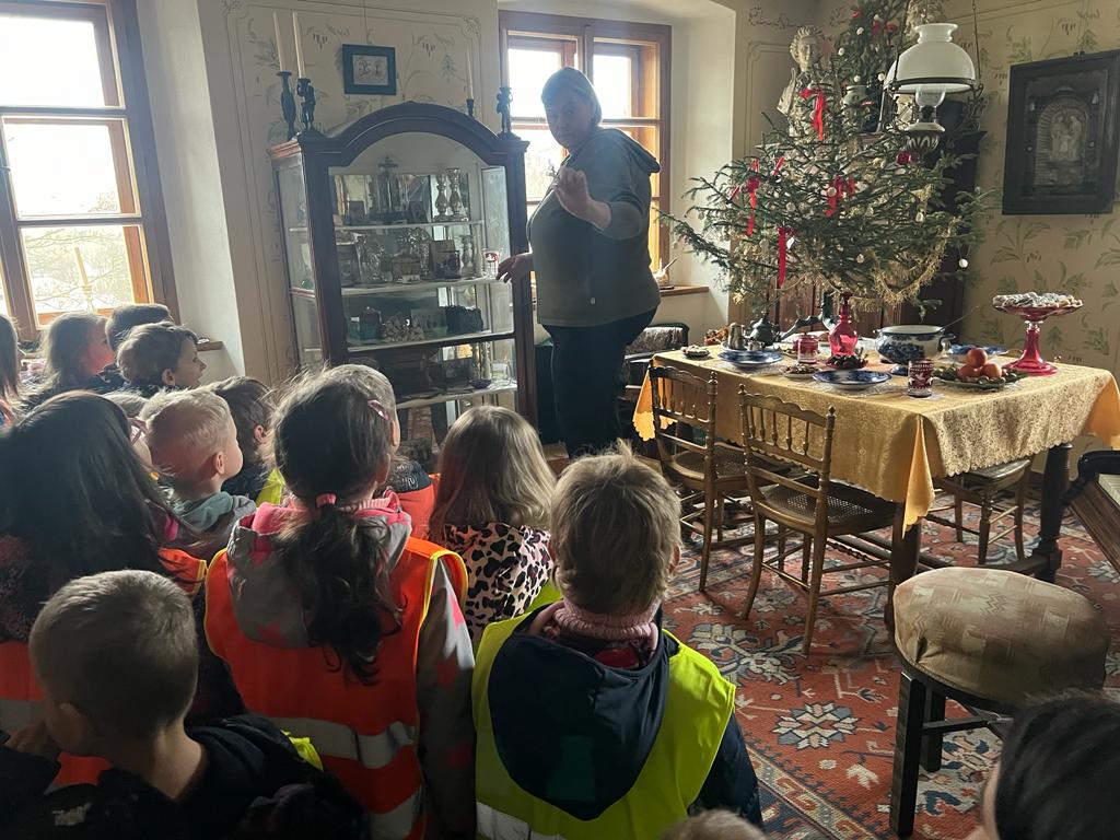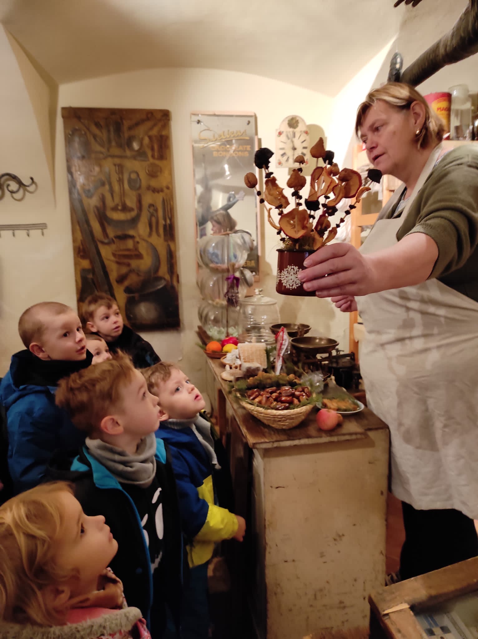 Dne 19.12.2023 jsme navštívili adventní výstavu v Moučkově domě. Měli jsme možnost prohlédnout si jak dříve vypadal obchod, kde lidé nakupuvali na Mikuláše a Vánoce. Následně jsme byli zavedeni do tradiční domácnosti. Prohlédli jsme si vánoční výzdobu, štědrovečerní pohoštění a dozvěděli jsme se jak dříve Štědrý večer probíhal. Nakonec nás paní průvodkyně seznámila s tradicemi. Kromě pouštění lodiček a lití olova, jsme se dozvěděli o tahání polínek nebo obracení hrníčků, které si děti i vyzkoušely.