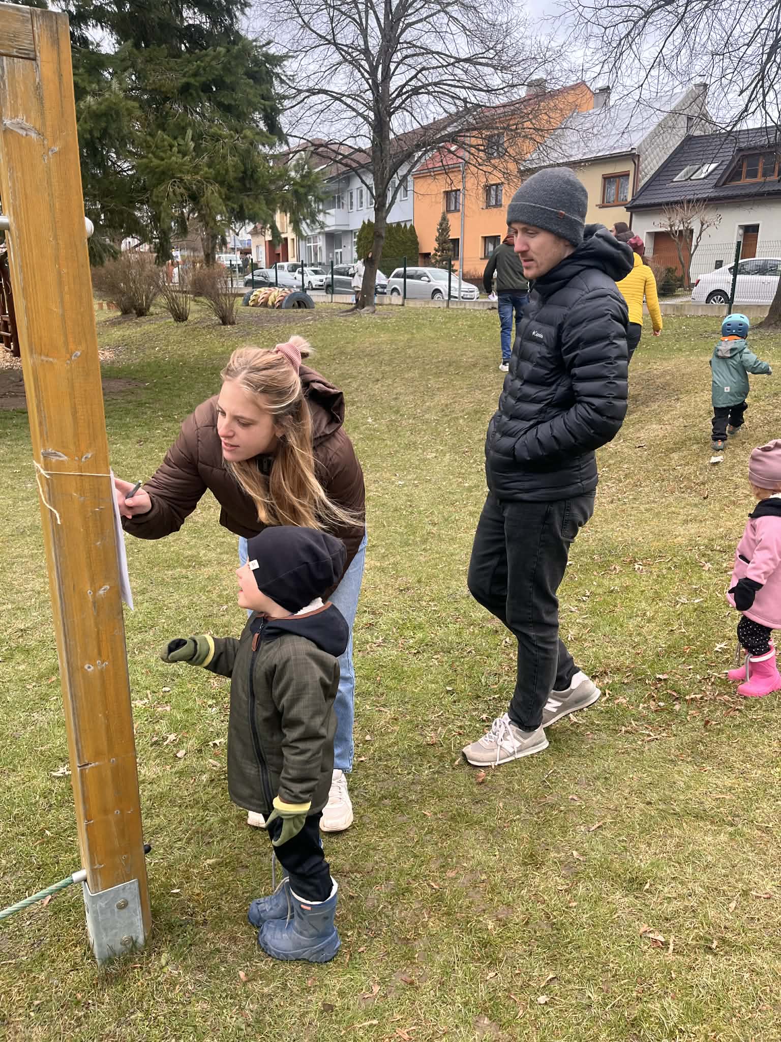 Na školní zahradě bylo nachystáno 12 úkolů a u každého z nich byla nutná spolupráce rodiče s dítětem.