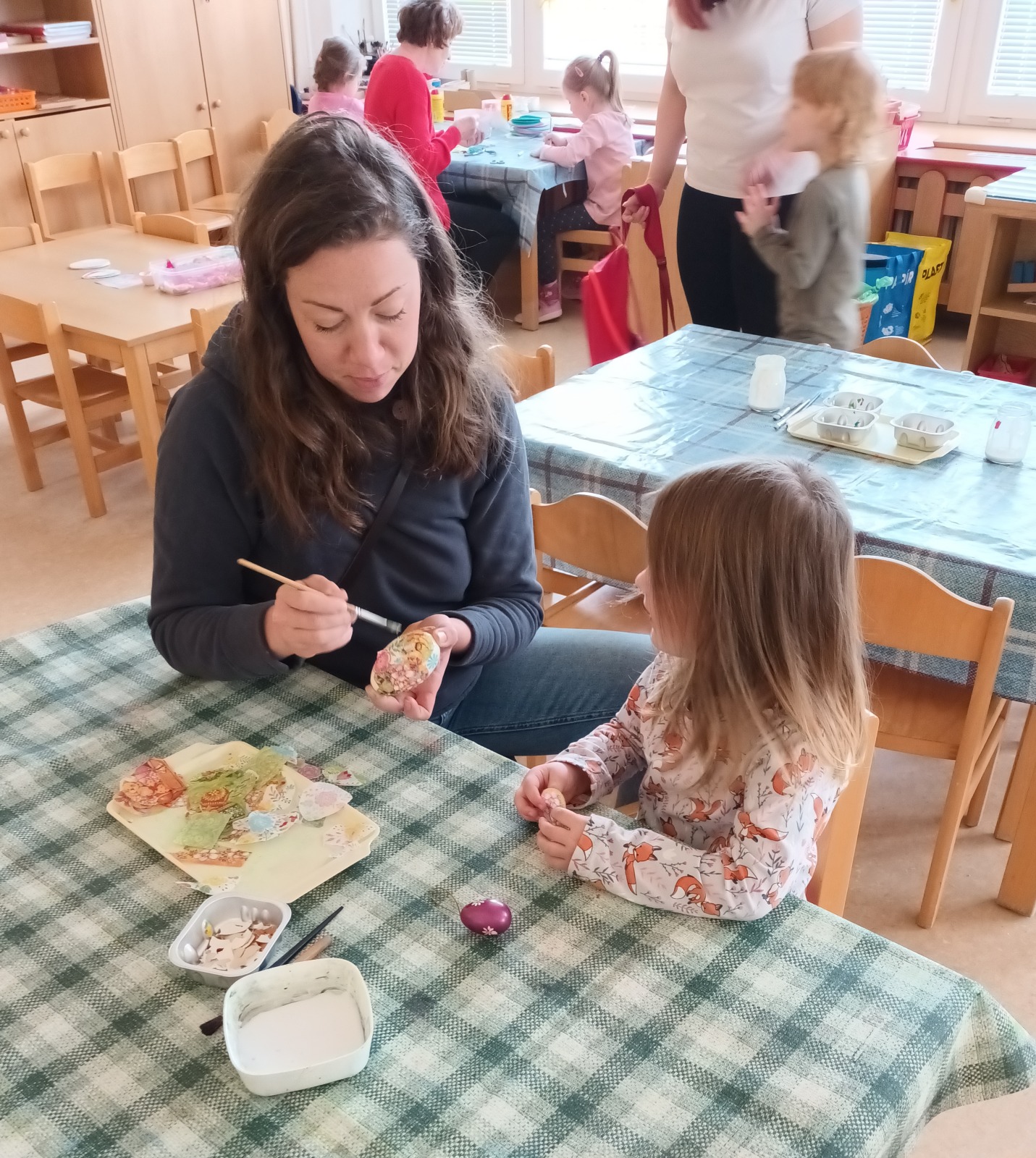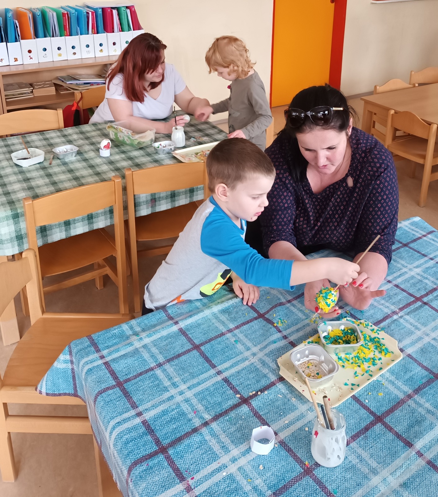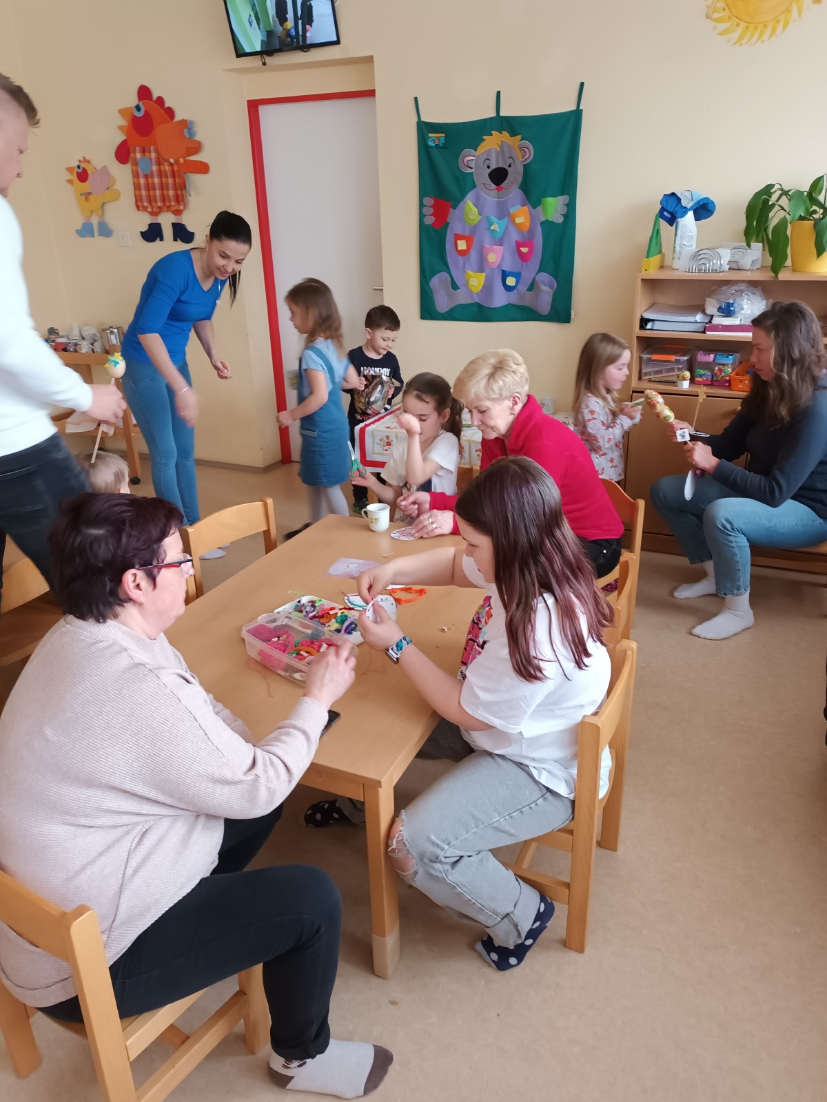 Děti si s rodiči užívali 26.3. „Velikonoční tvořivé odpoledne“.
