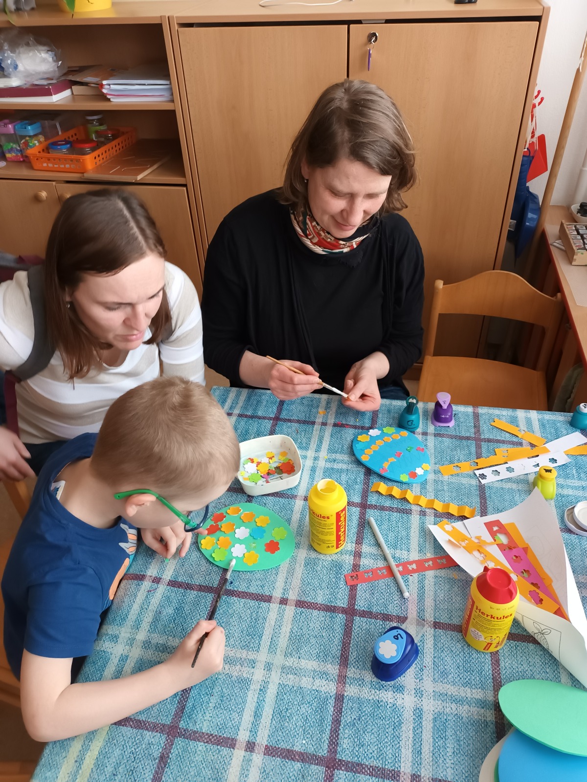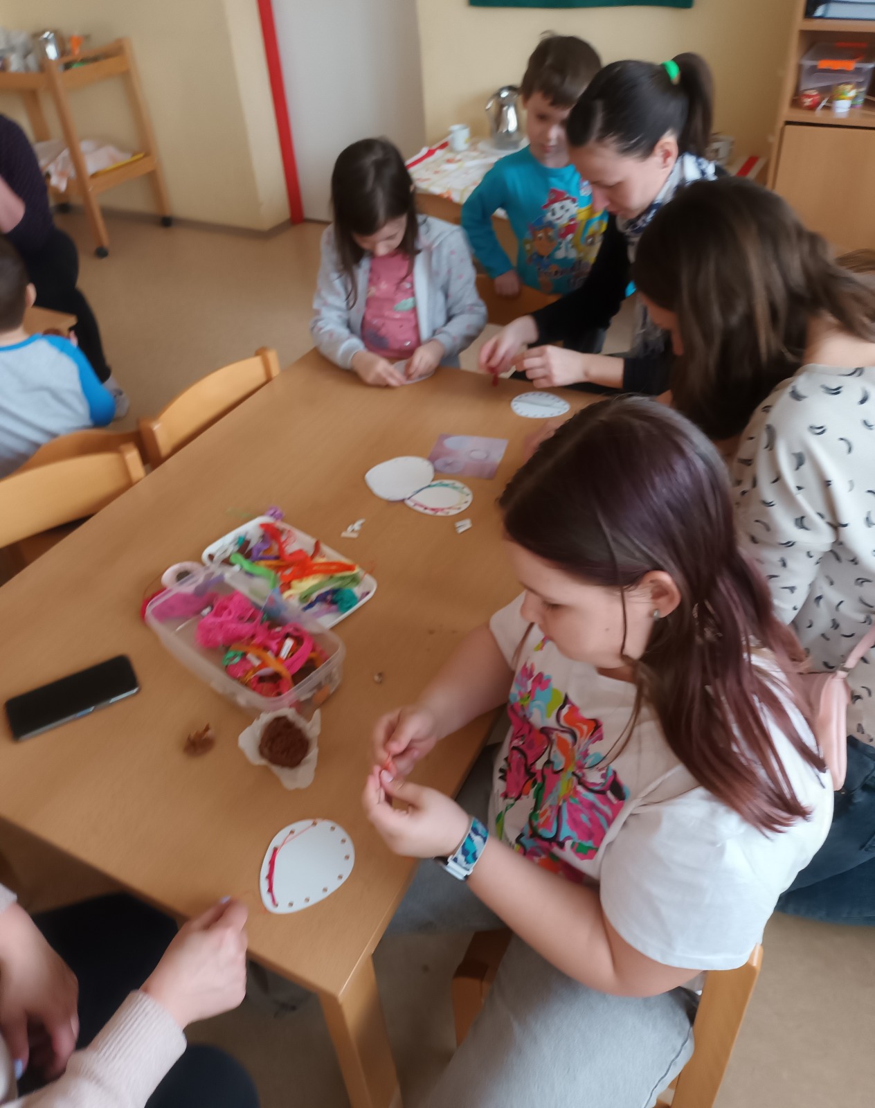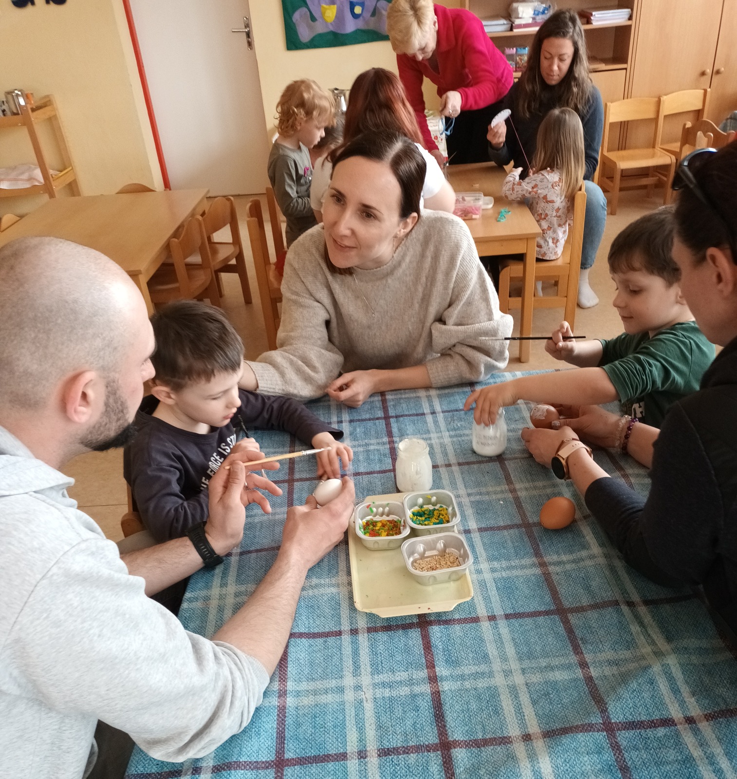 Děti si s rodiči užívali 26.3. „Velikonoční tvořivé odpoledne“.