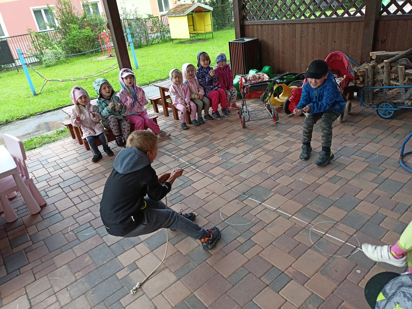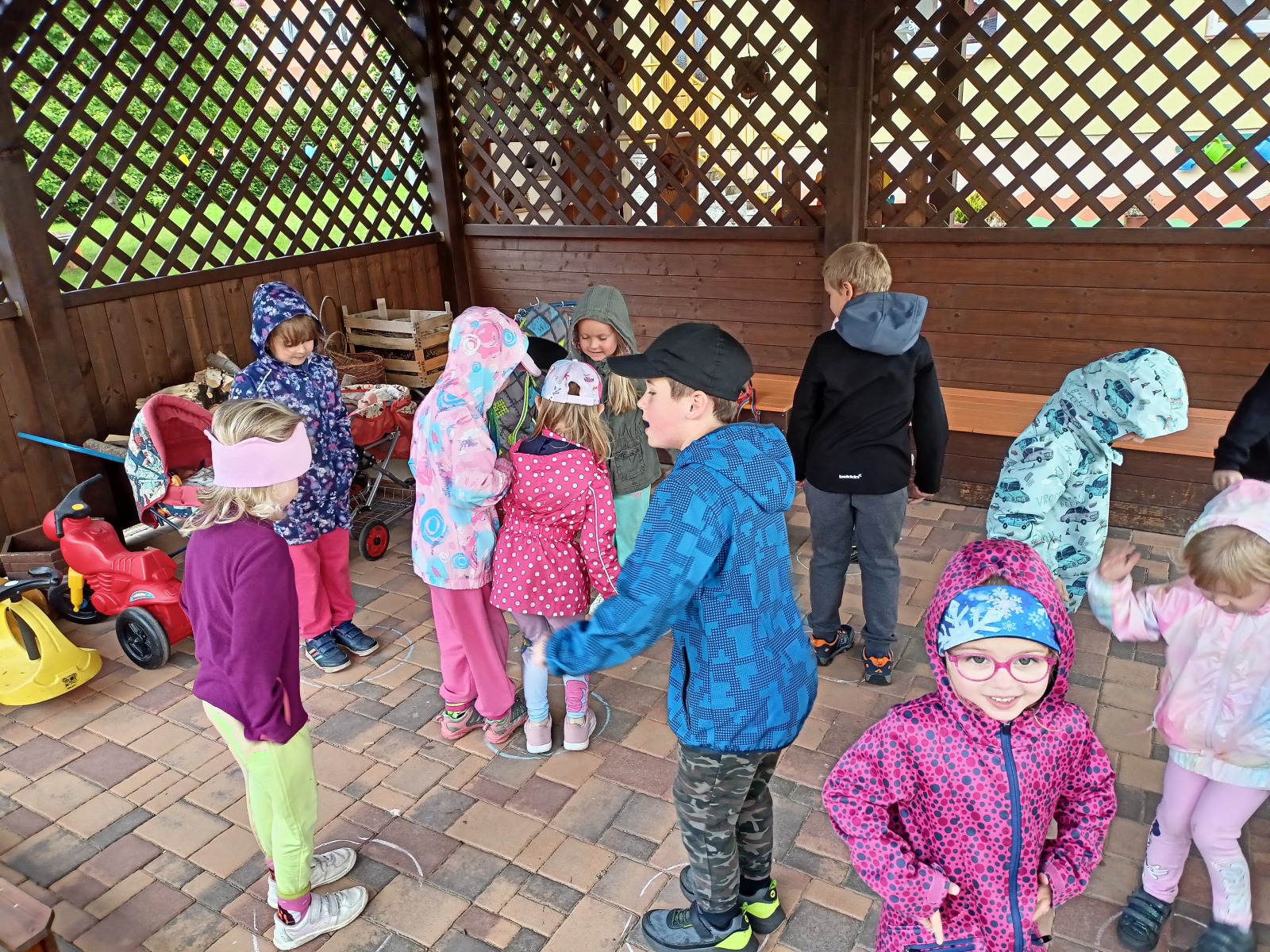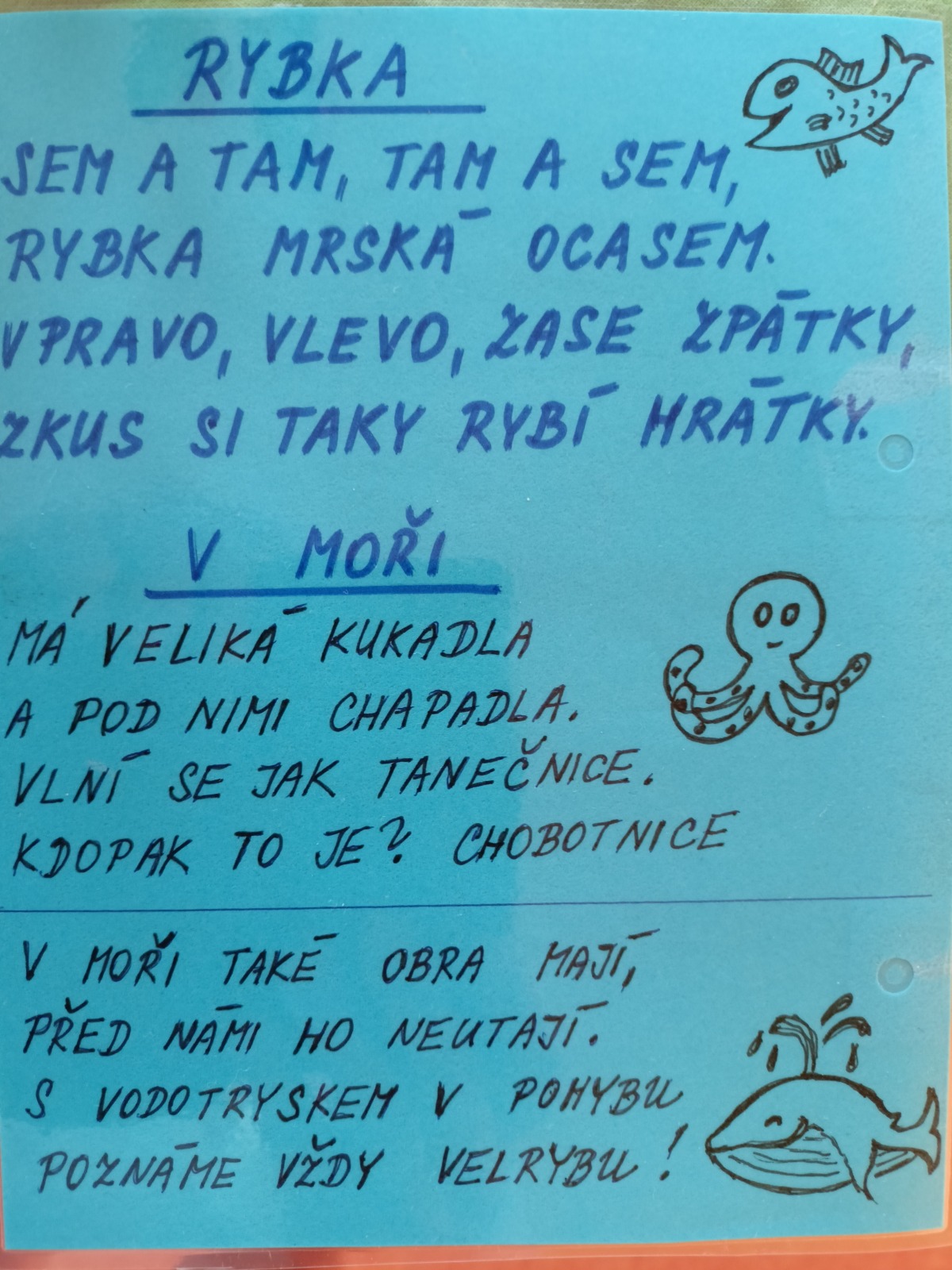 V centrech aktivit si zkusily postavit pyramidy, tvořily moře s rybkami a želvami, lupou prozkoumávaly škebličky, pouštěly vyrobené loďky po vodě, cvičily výstup na žebřiny při pozorování krajiny a ostrovů. Předškoláčci si vyzkoušeli lámat špejle (sestavovali z nich kostry ryb) a správné zavazování uzlíků. Děti z Vrabčáků získaly základní poznatky o moři a životu v něm, krátká říkadla si osvojily při rytmizaci.