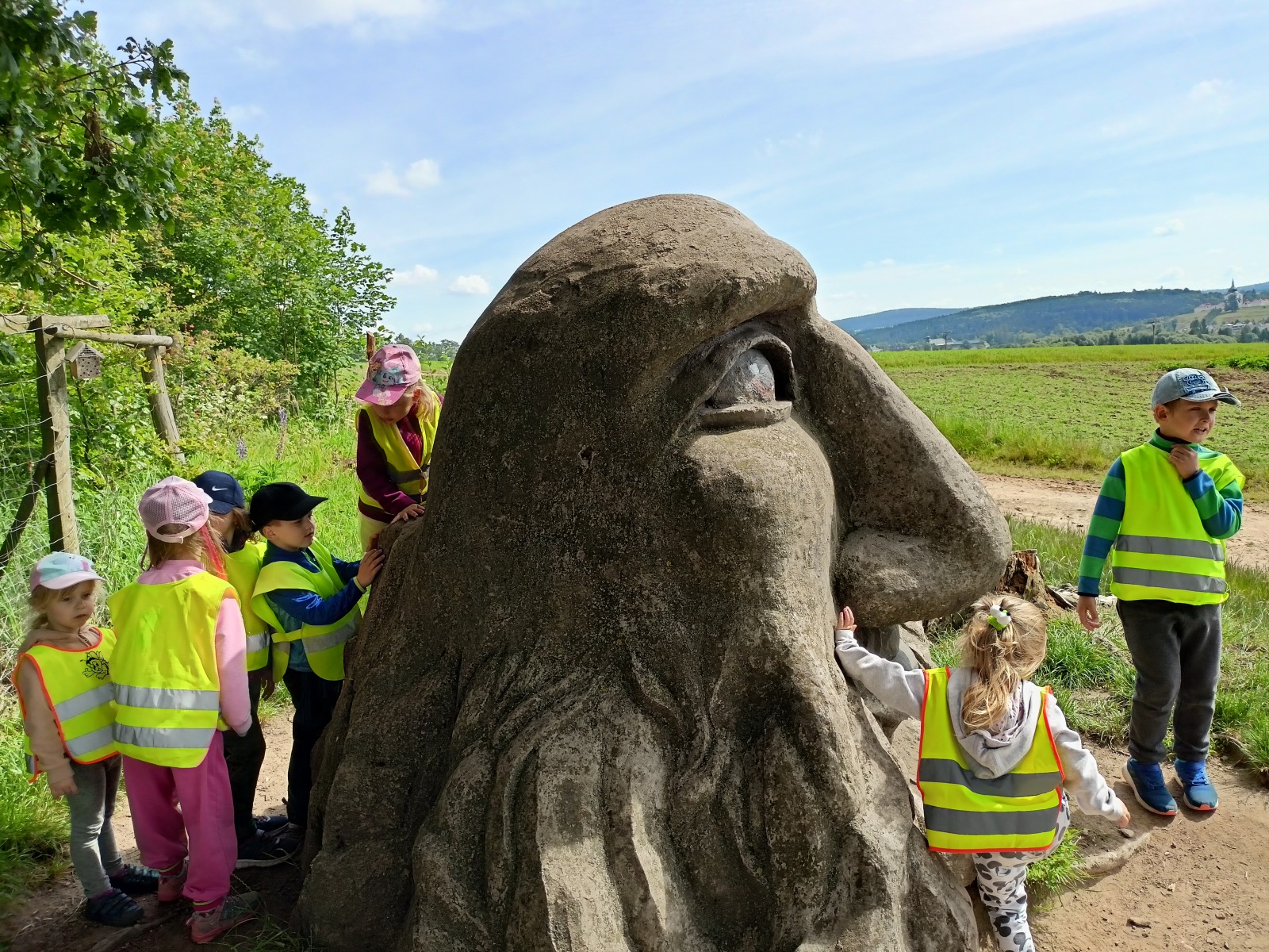 Krásné počasí jsme si užili při výšlapu k Mamlasovi. Při procházce úvozem děti našly ,,největší“ list mlíčáku, který pak vzaly k obědu našim klukům morčátkům . Sledovaly z dálky Žďár i zemědělské stroje na poli. U Mamlase si odpočaly a pak hurá hledat ostrov plný barevných motýlů, vysokých stromů, sopek, oranžových květin a jezer. Ten jsme našli společnými silami a pak i poklad, který našim námořníkům zanechal kapitán velké zaoceánské lodi.