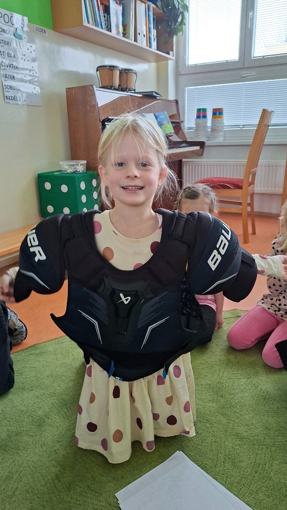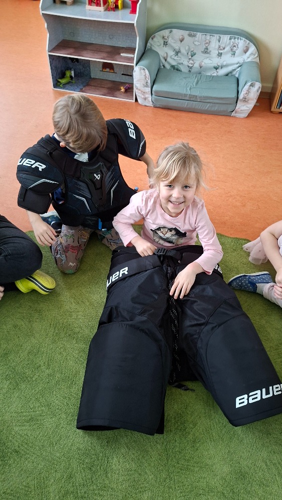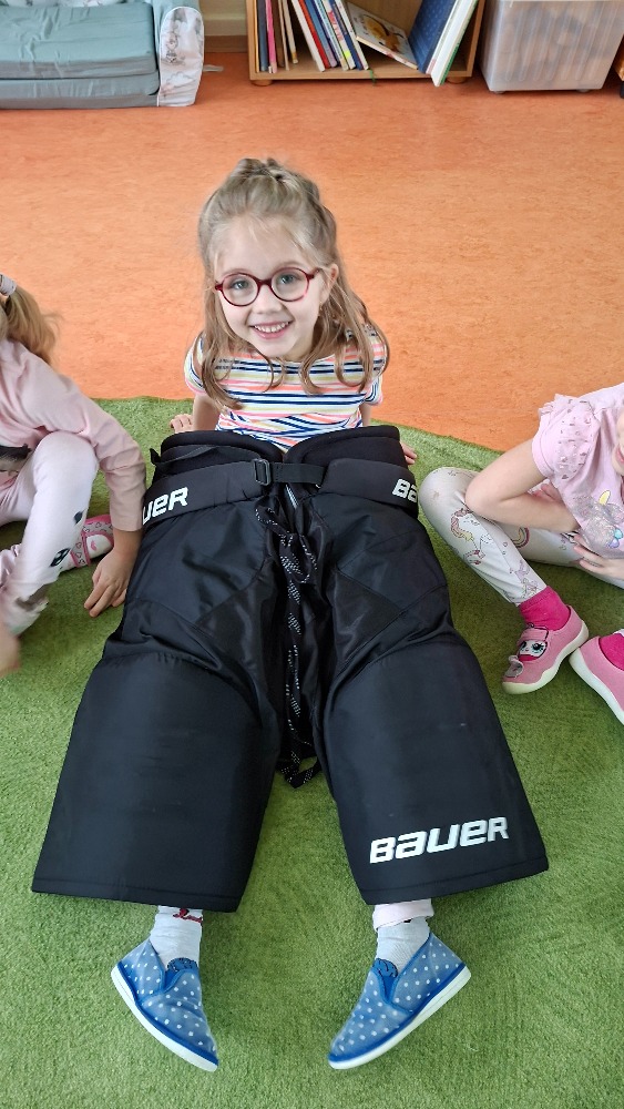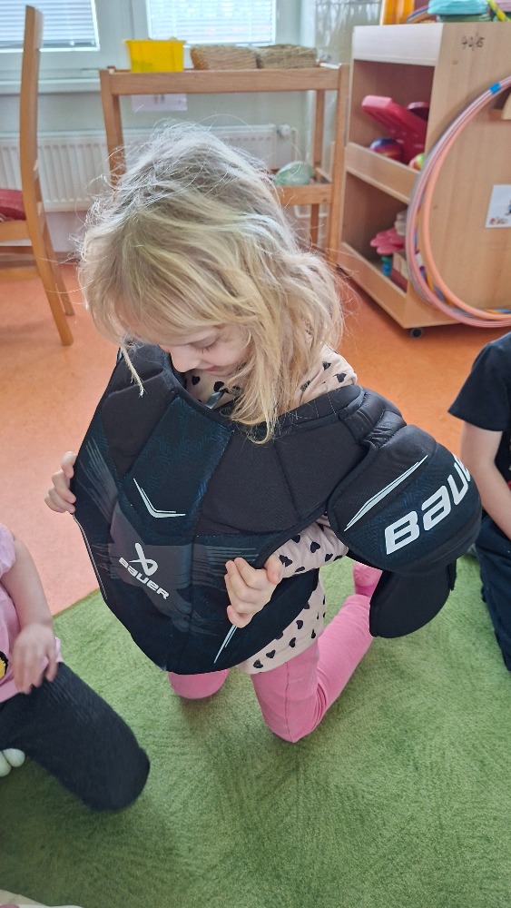 Největší nadšení u dětí vzbudila hokejová výstroj, kterou si s radostí vyzkoušely. ⛸️❄️