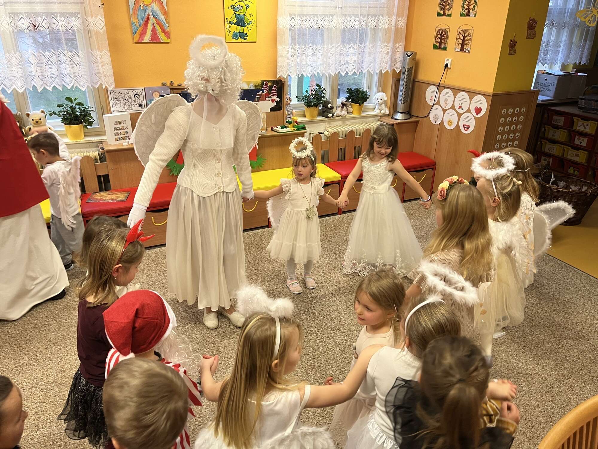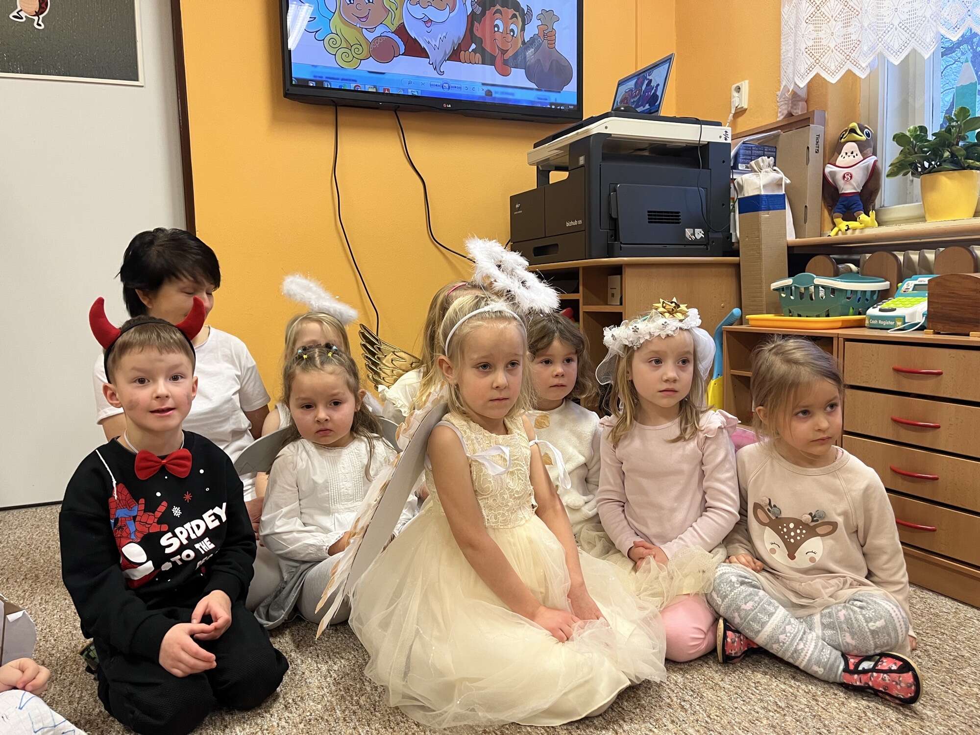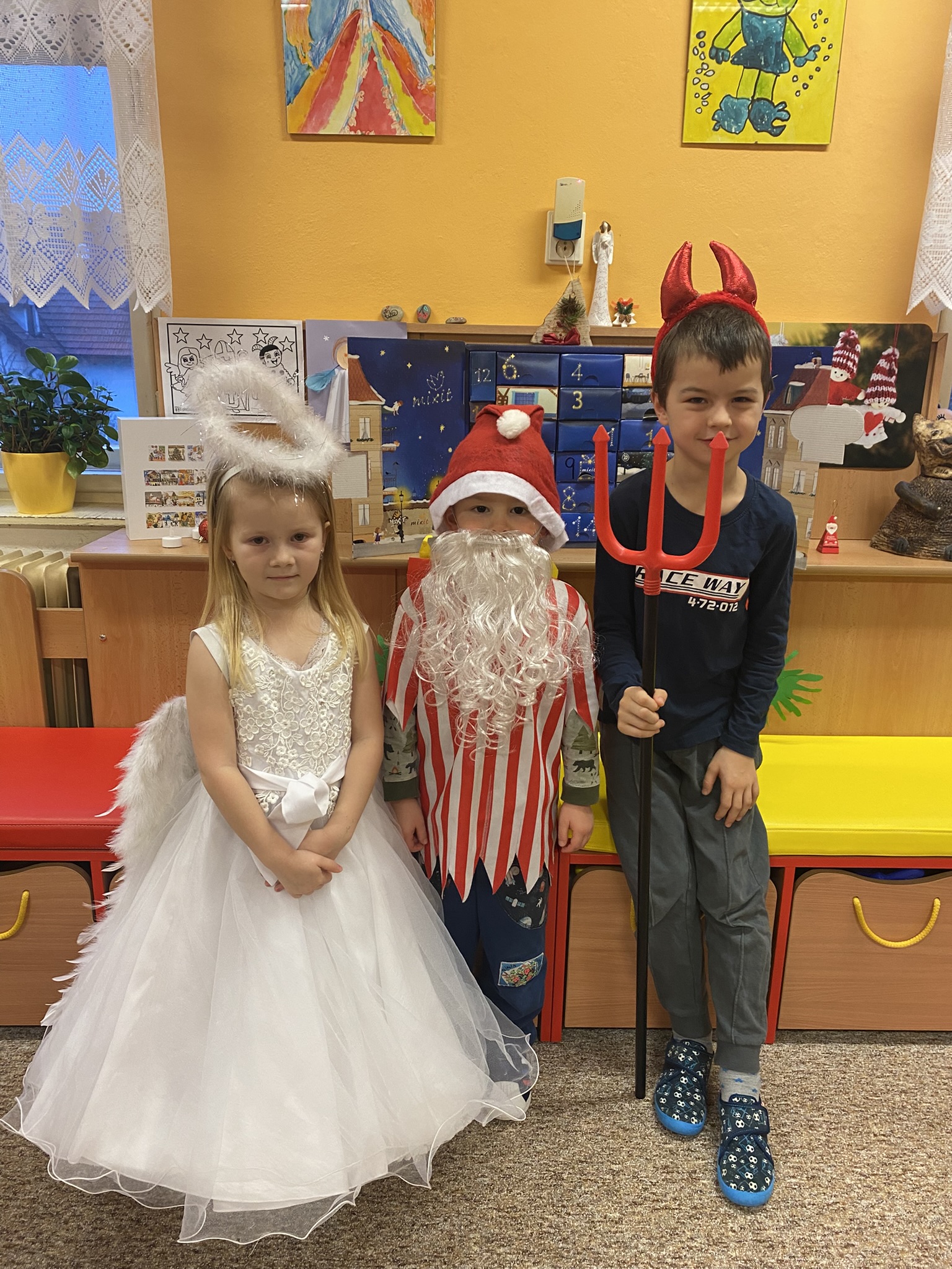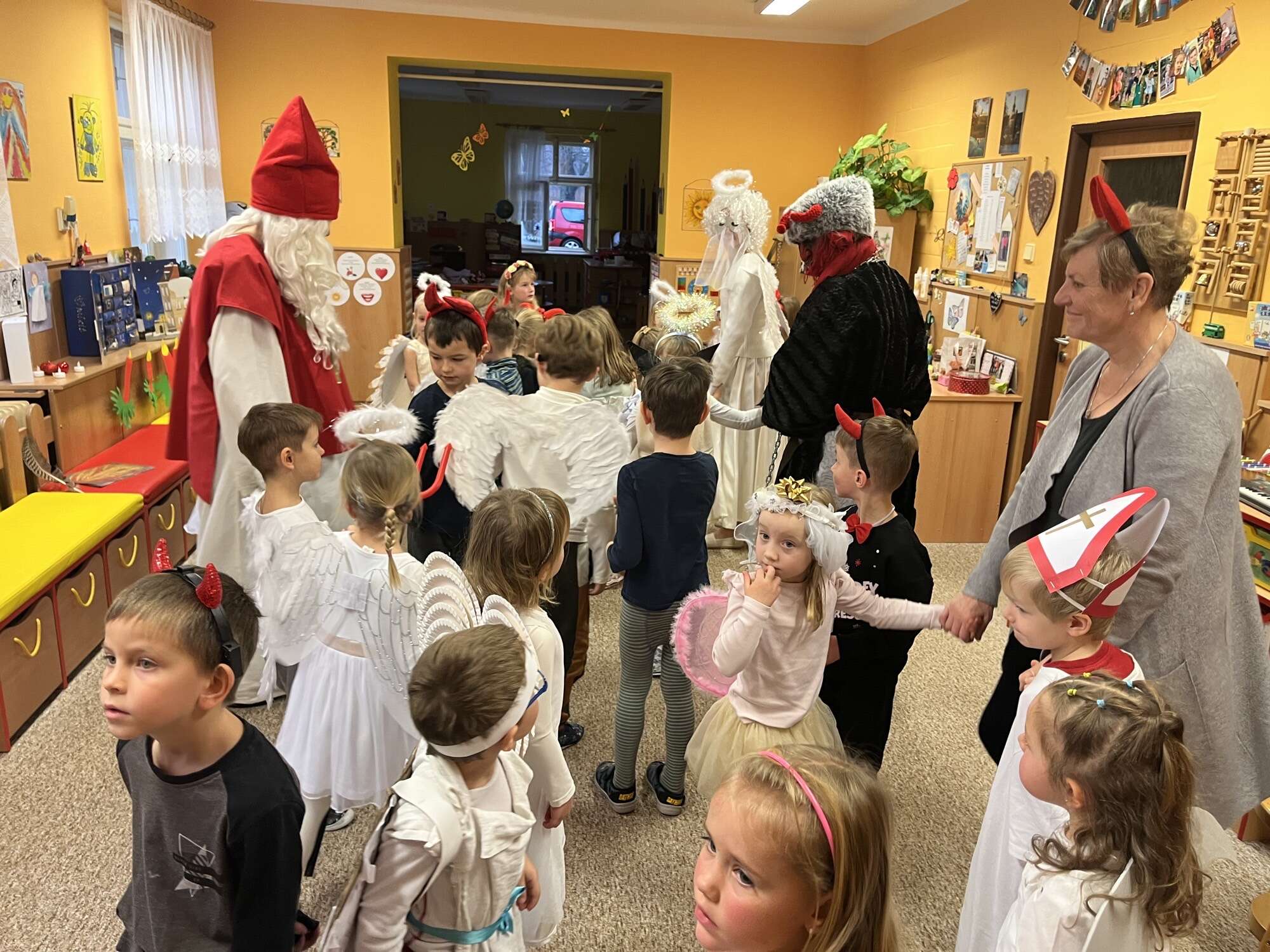 Už od samého rána přicházely děti v krásných kostýmech čertů, andělů a Mikuláše, což celé školce dodalo tu pravou sváteční náladu.