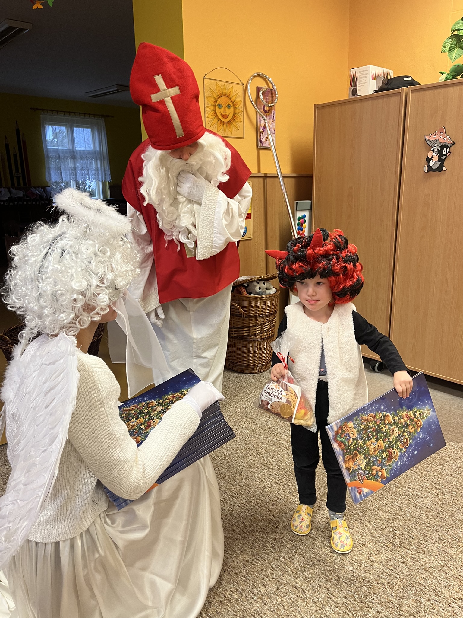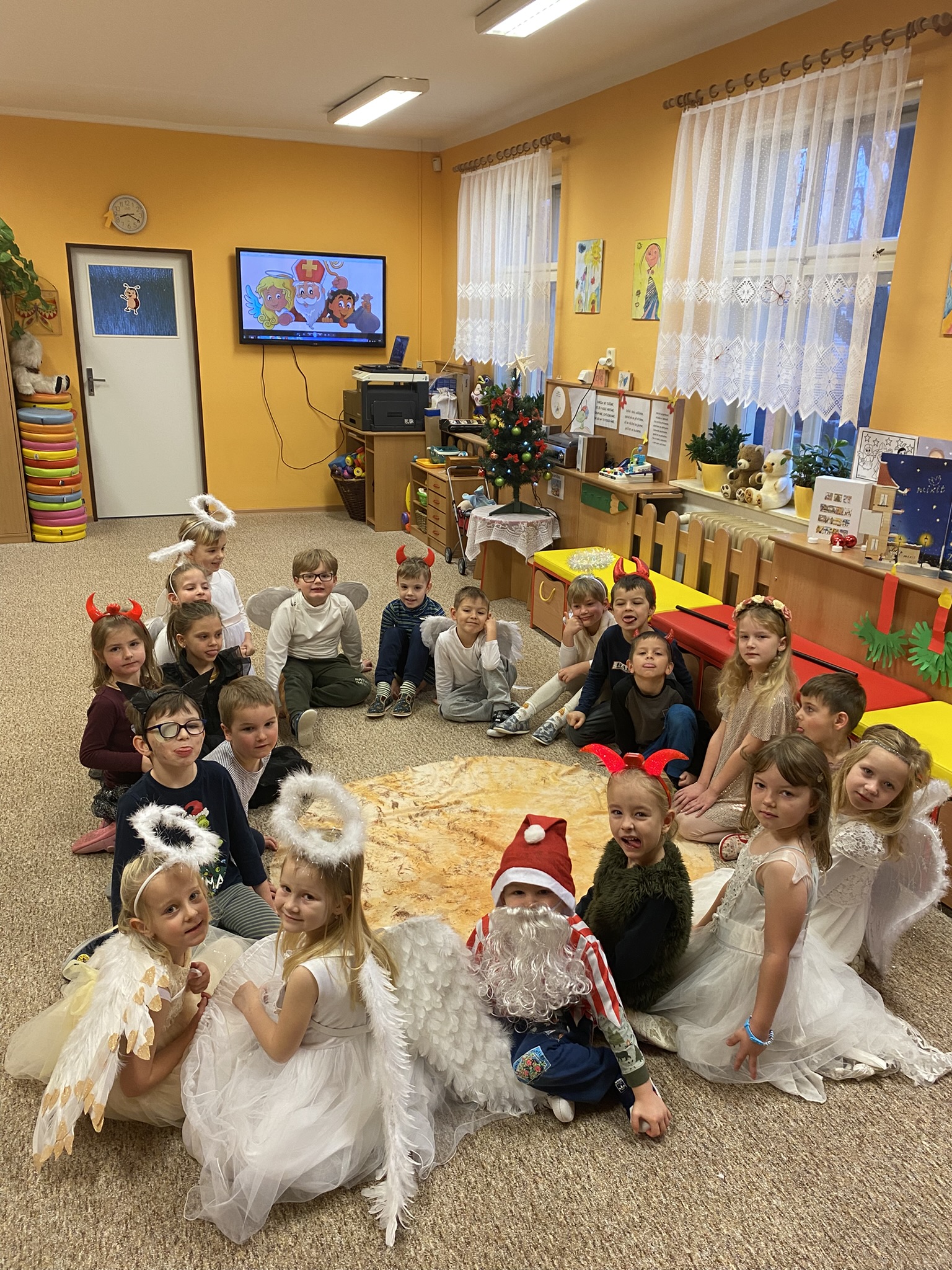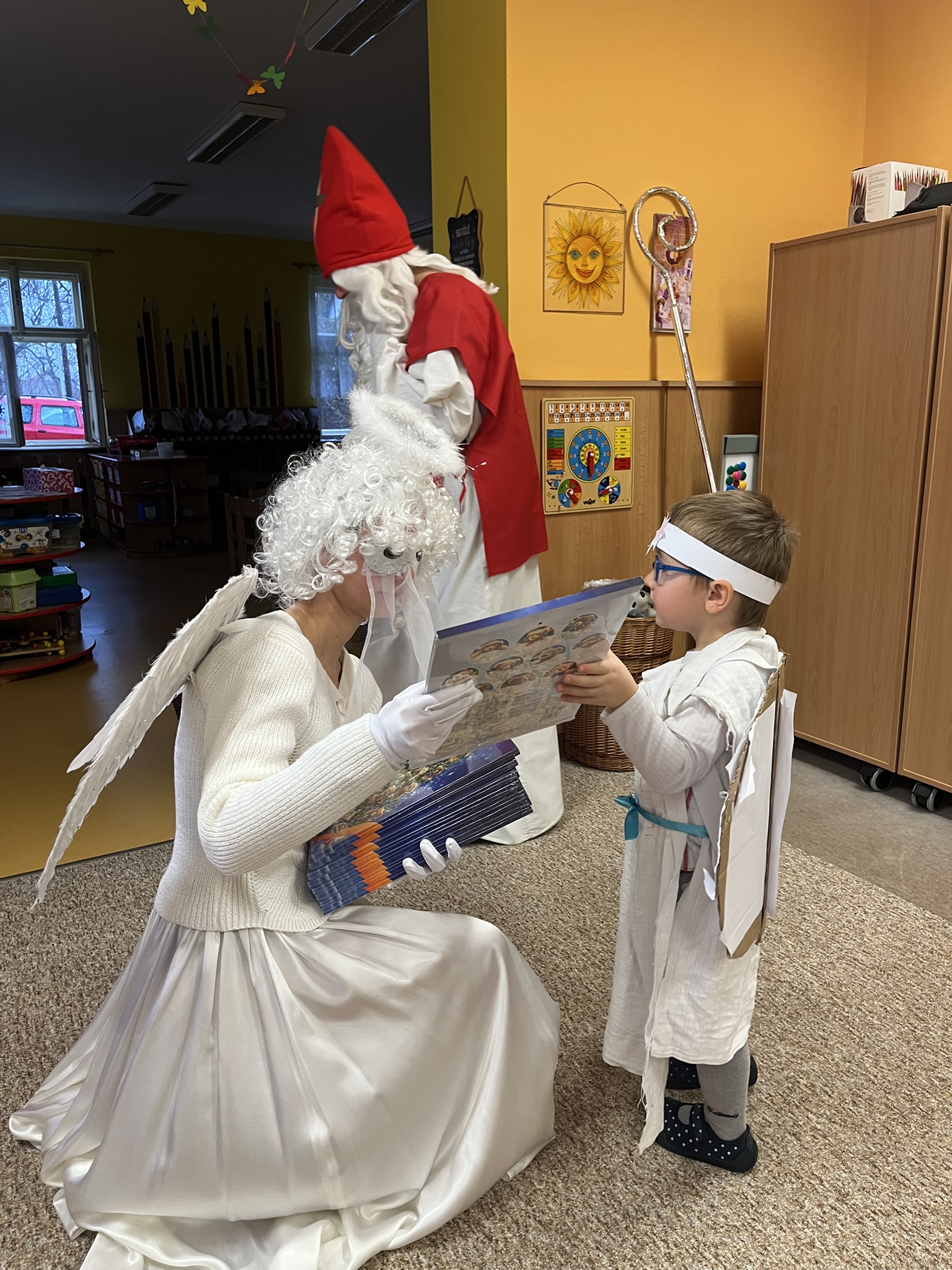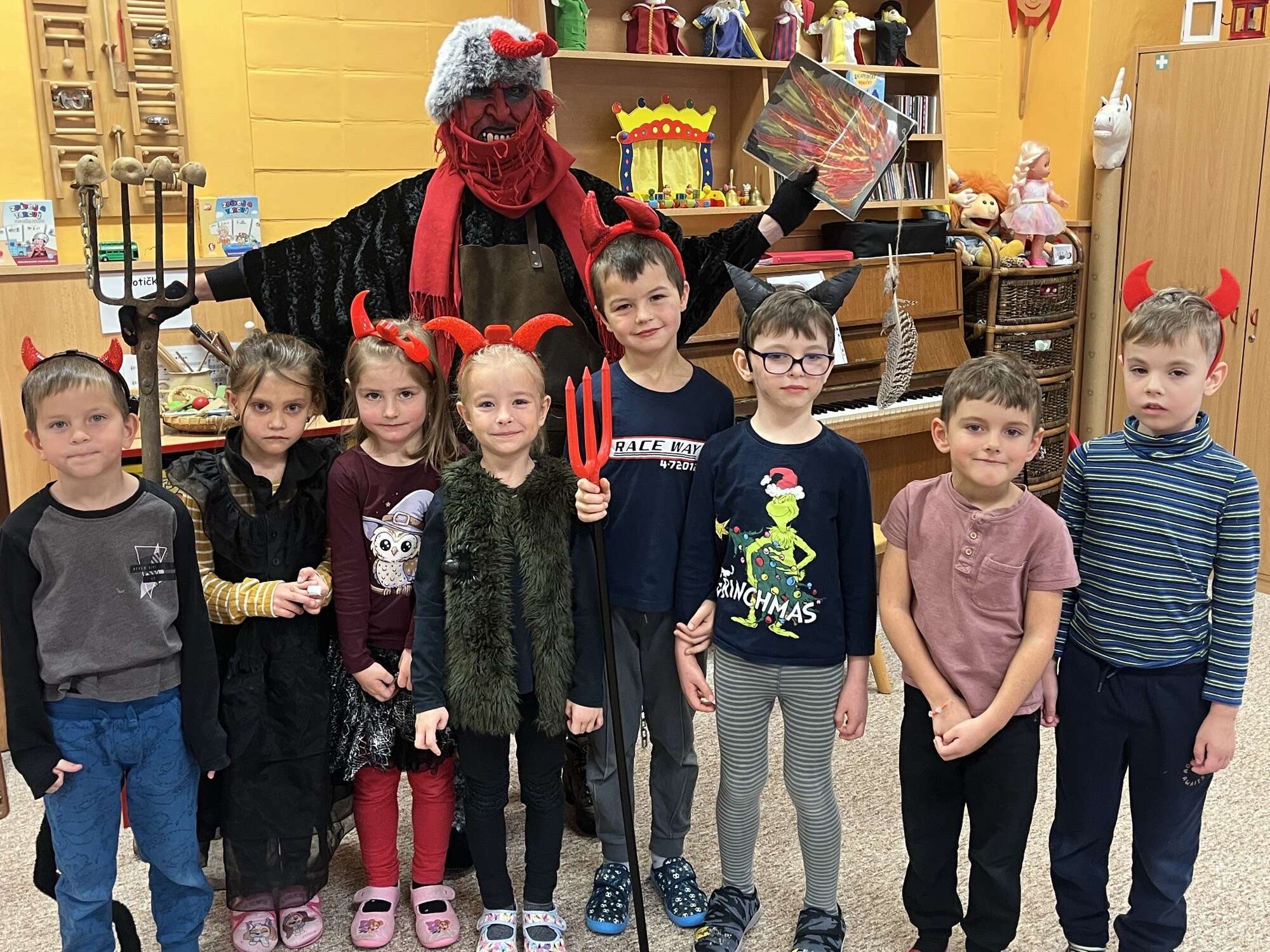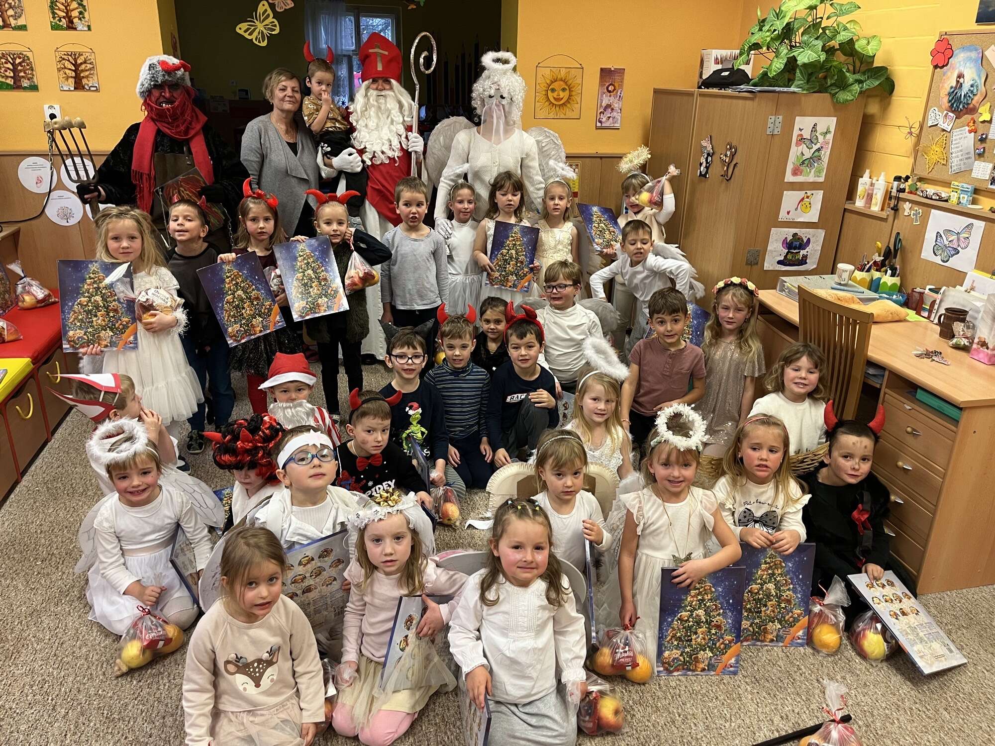 Už od samého rána přicházely děti v krásných kostýmech čertů, andělů a Mikuláše, což celé školce dodalo tu pravou sváteční náladu.