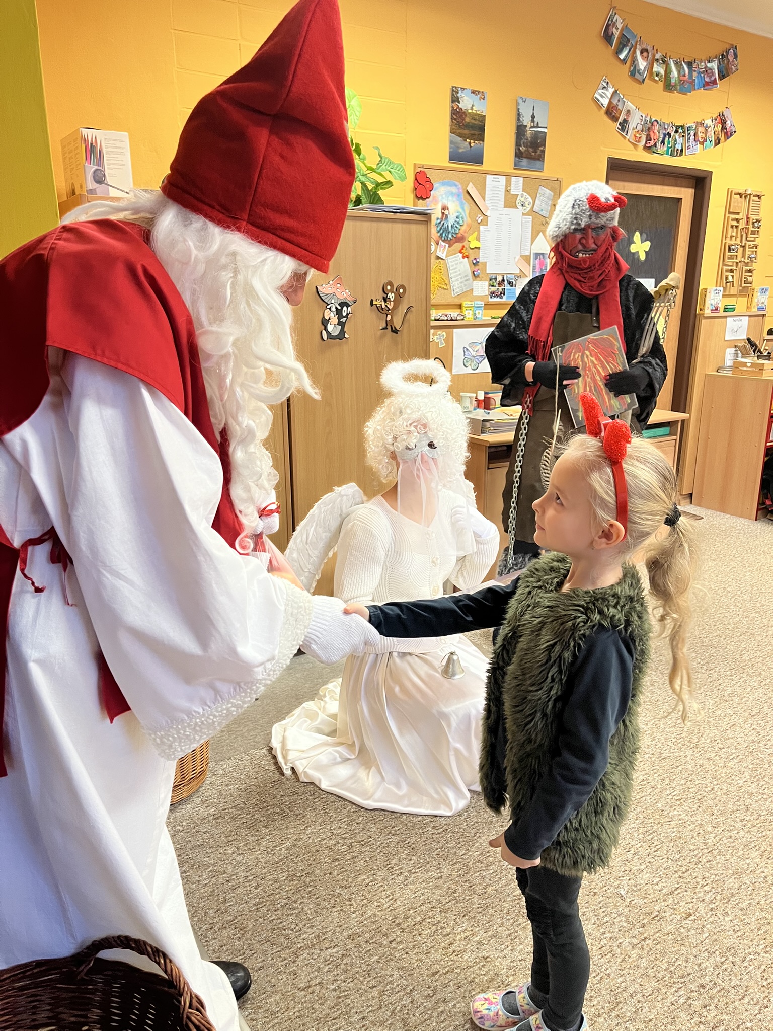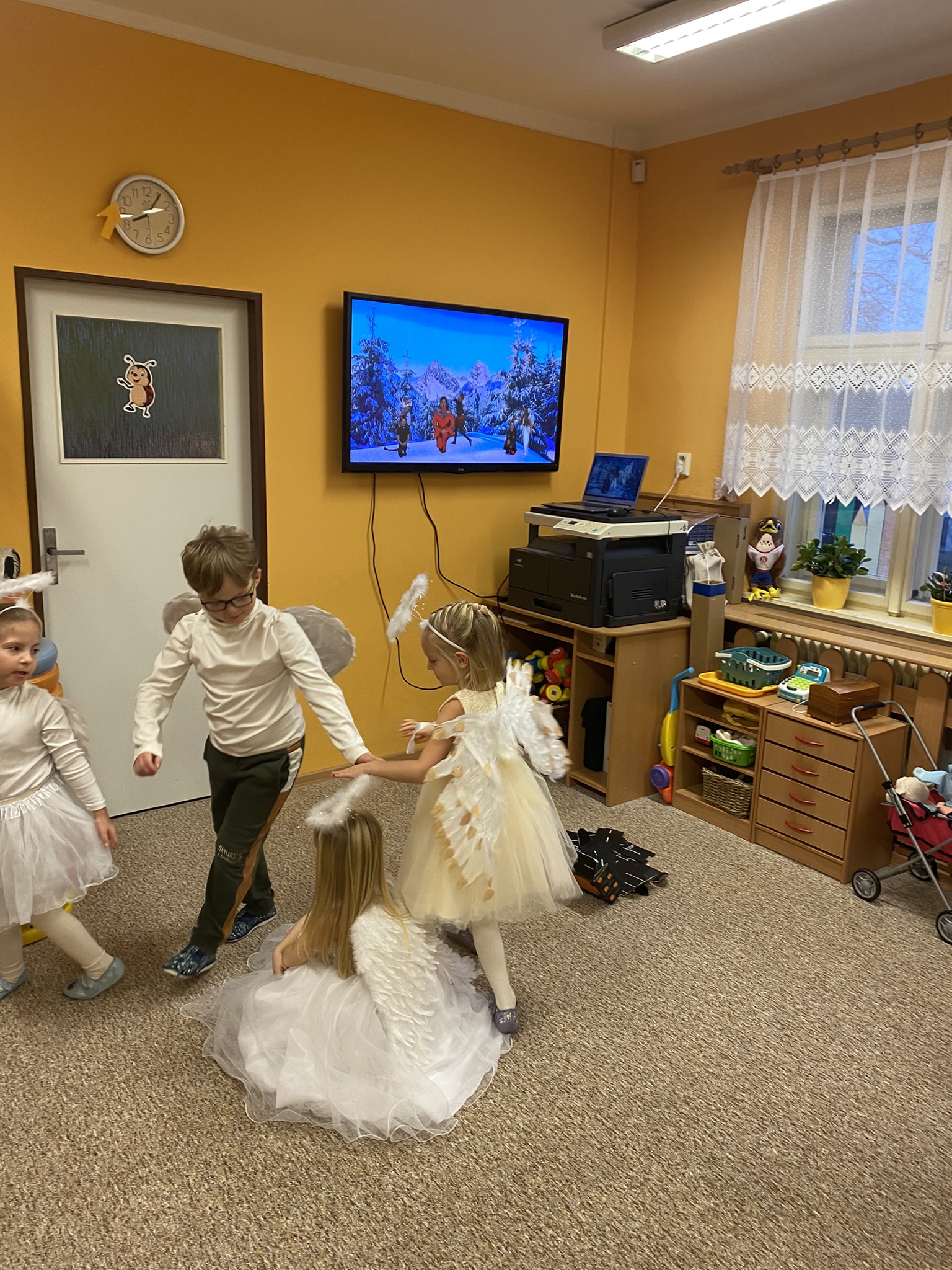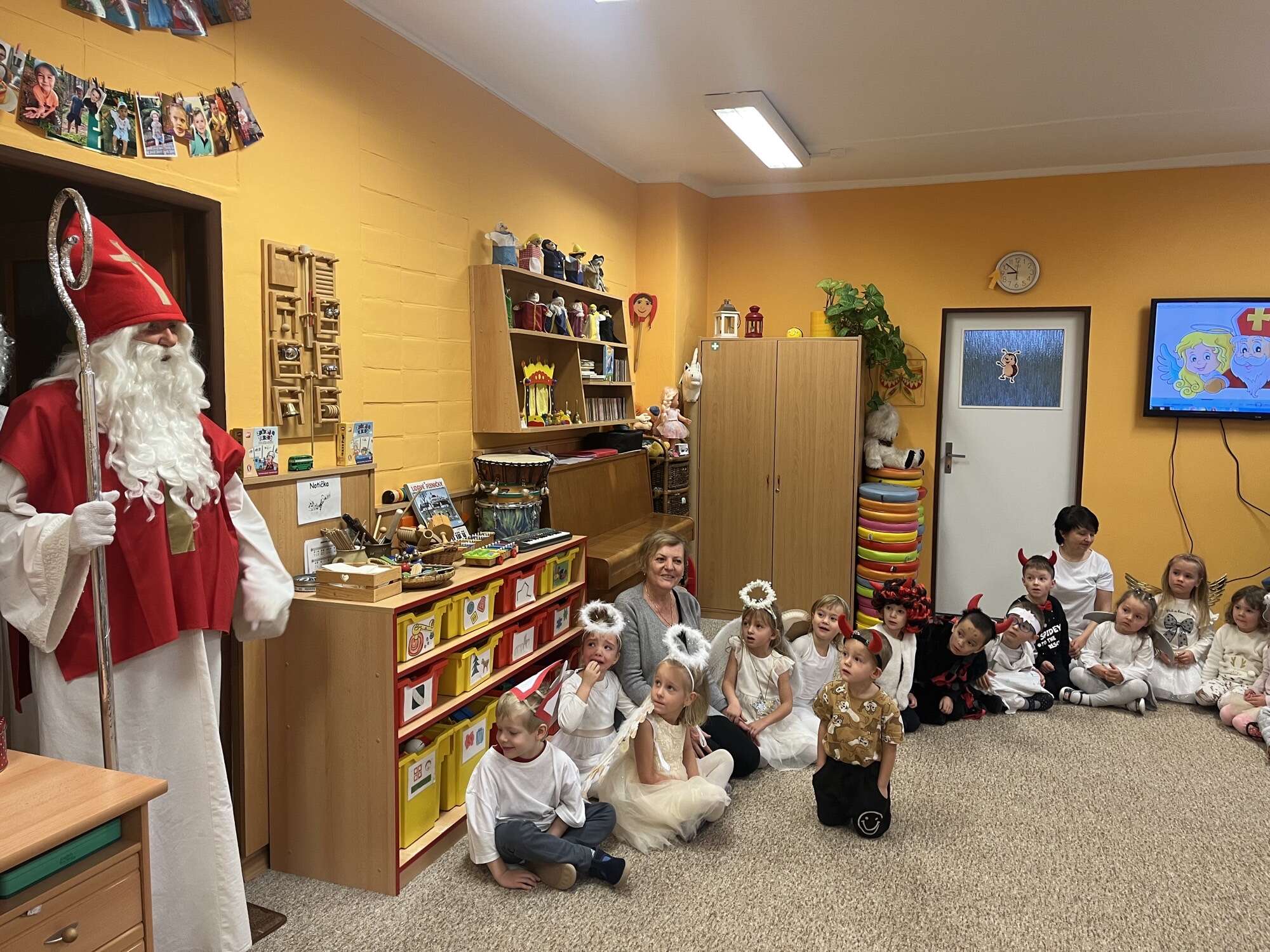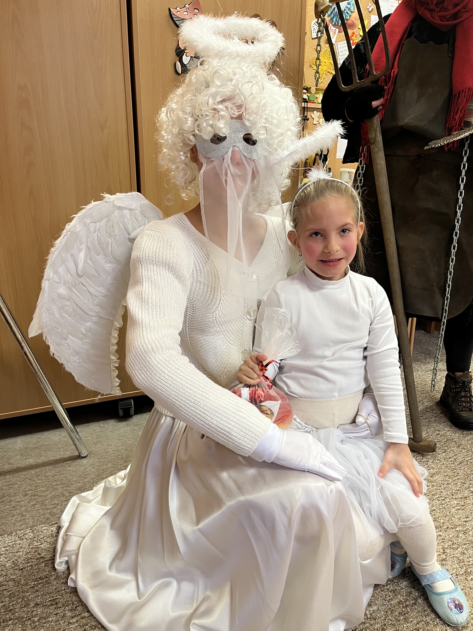 Už od samého rána přicházely děti v krásných kostýmech čertů, andělů a Mikuláše, což celé školce dodalo tu pravou sváteční náladu.
