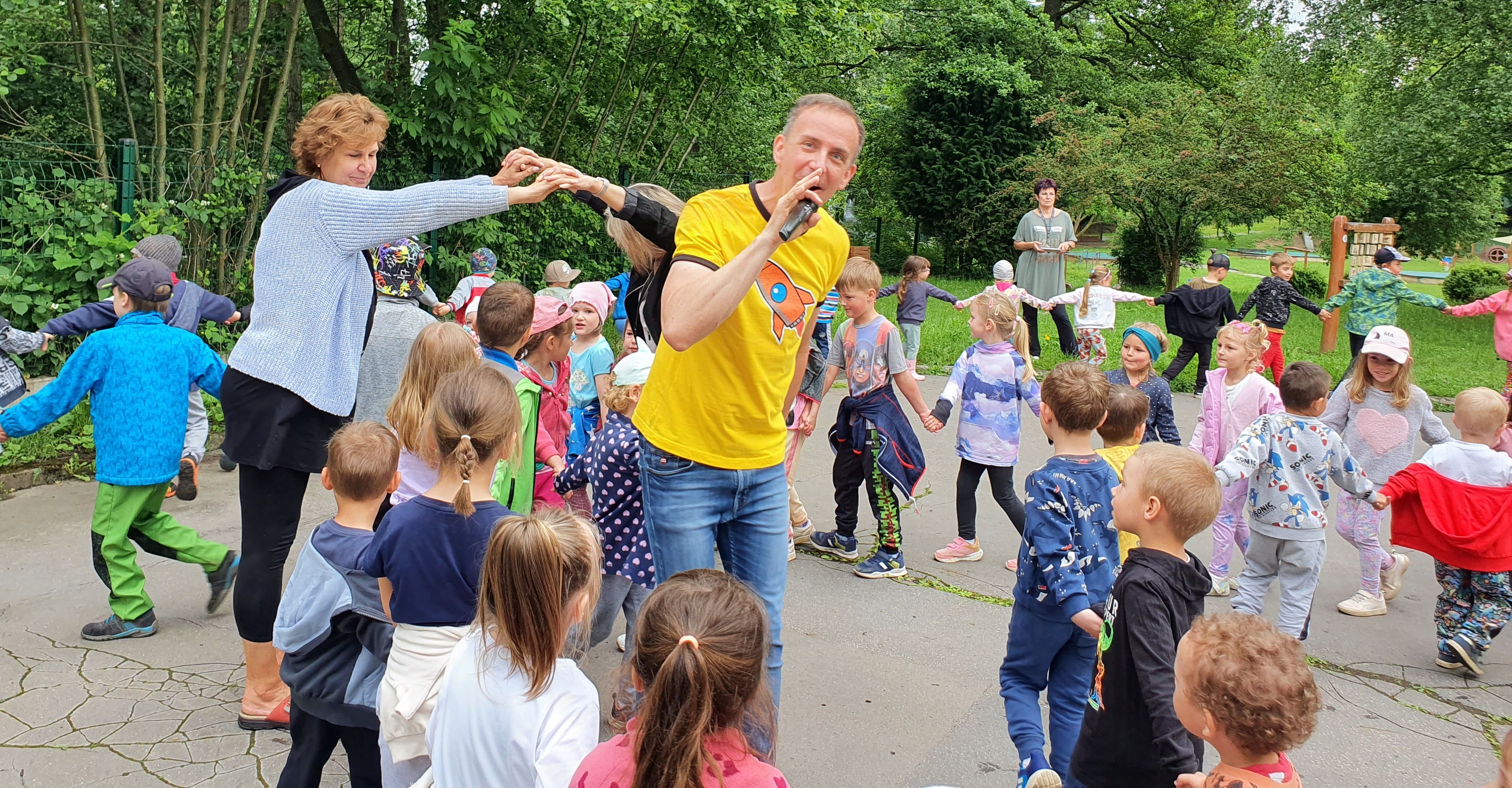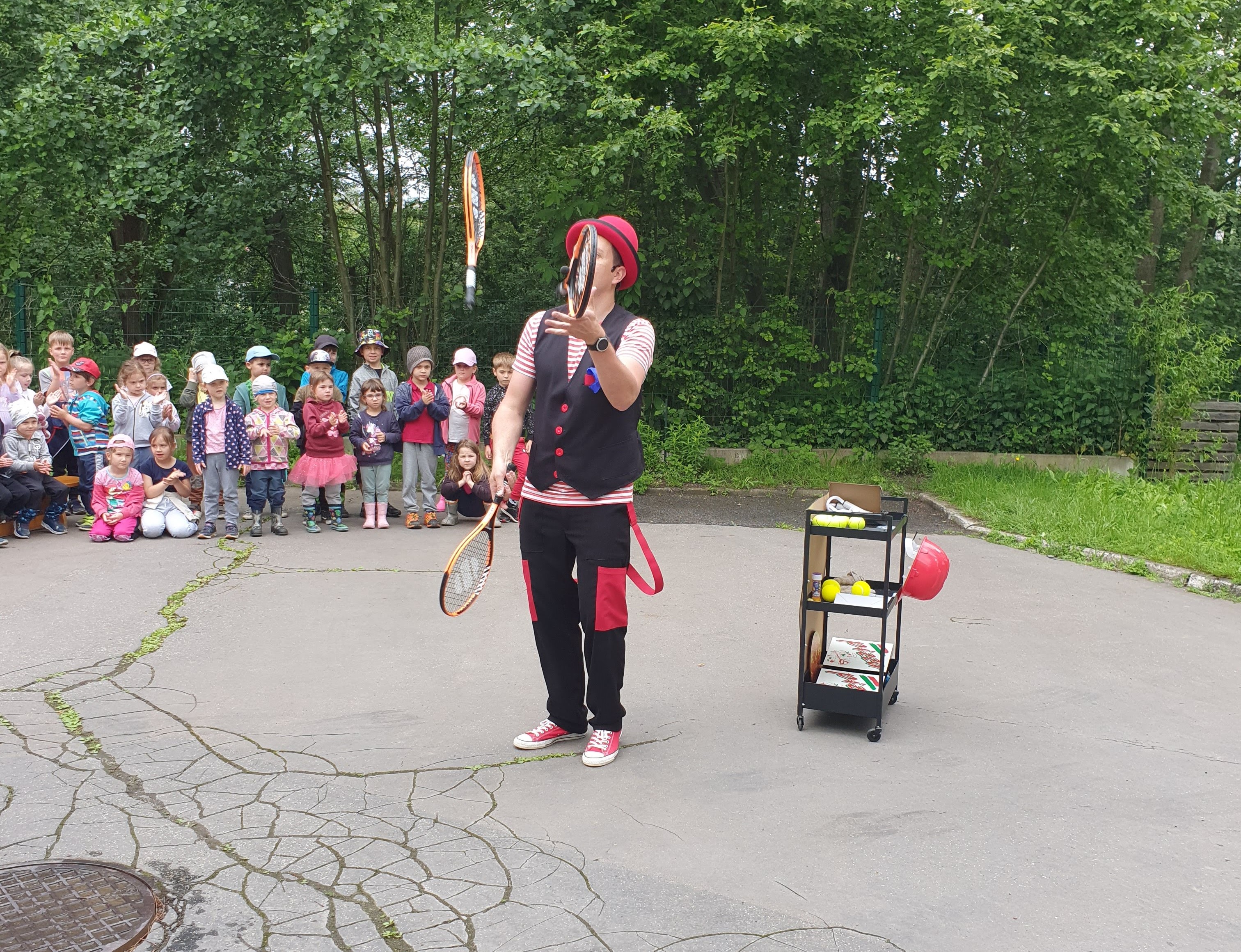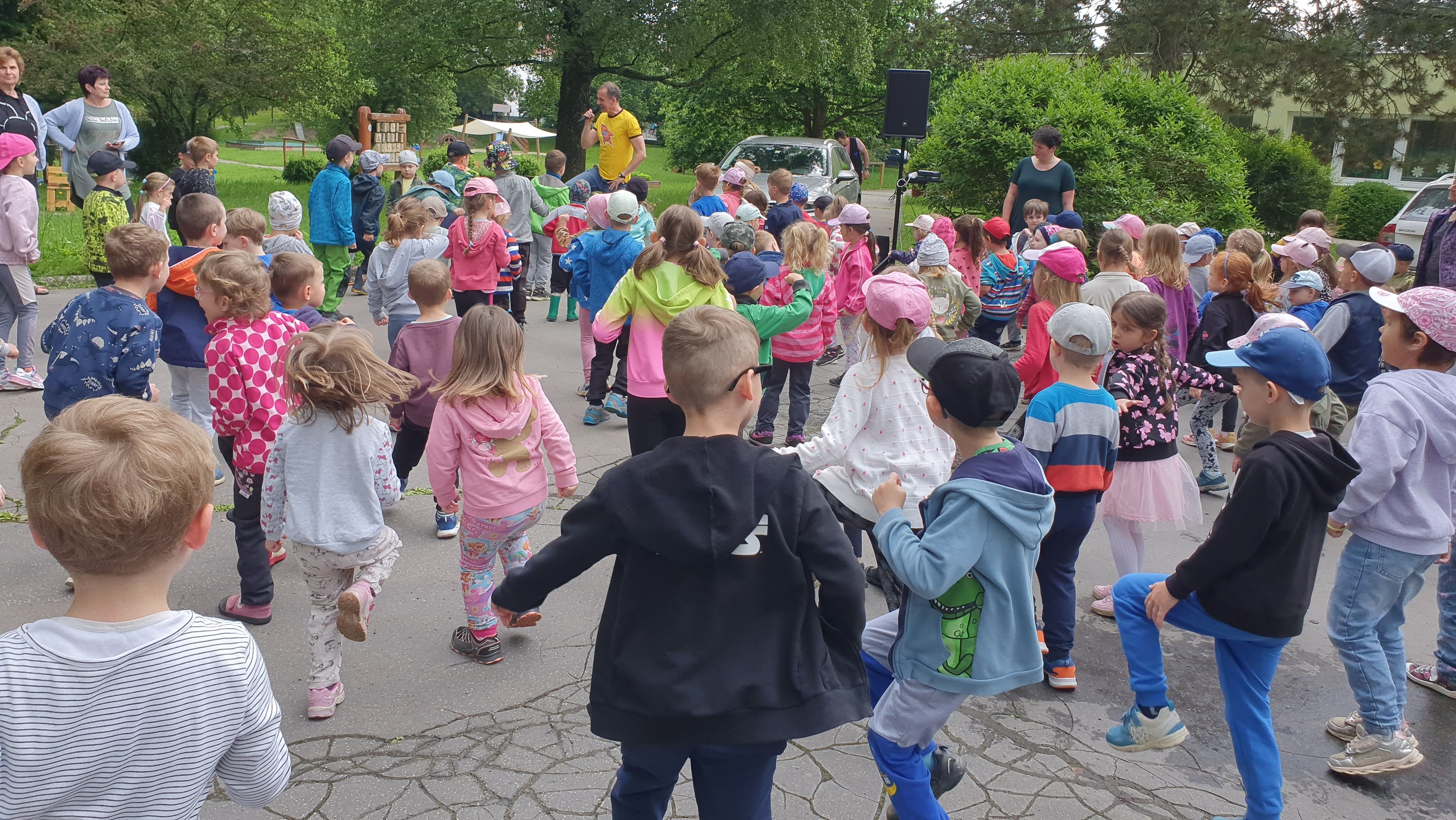 V pondělí 03.06. dopoledne přijel do naší školky moderátor Milan Řezníček pobavit všechny děti svým zábavným tancováním.